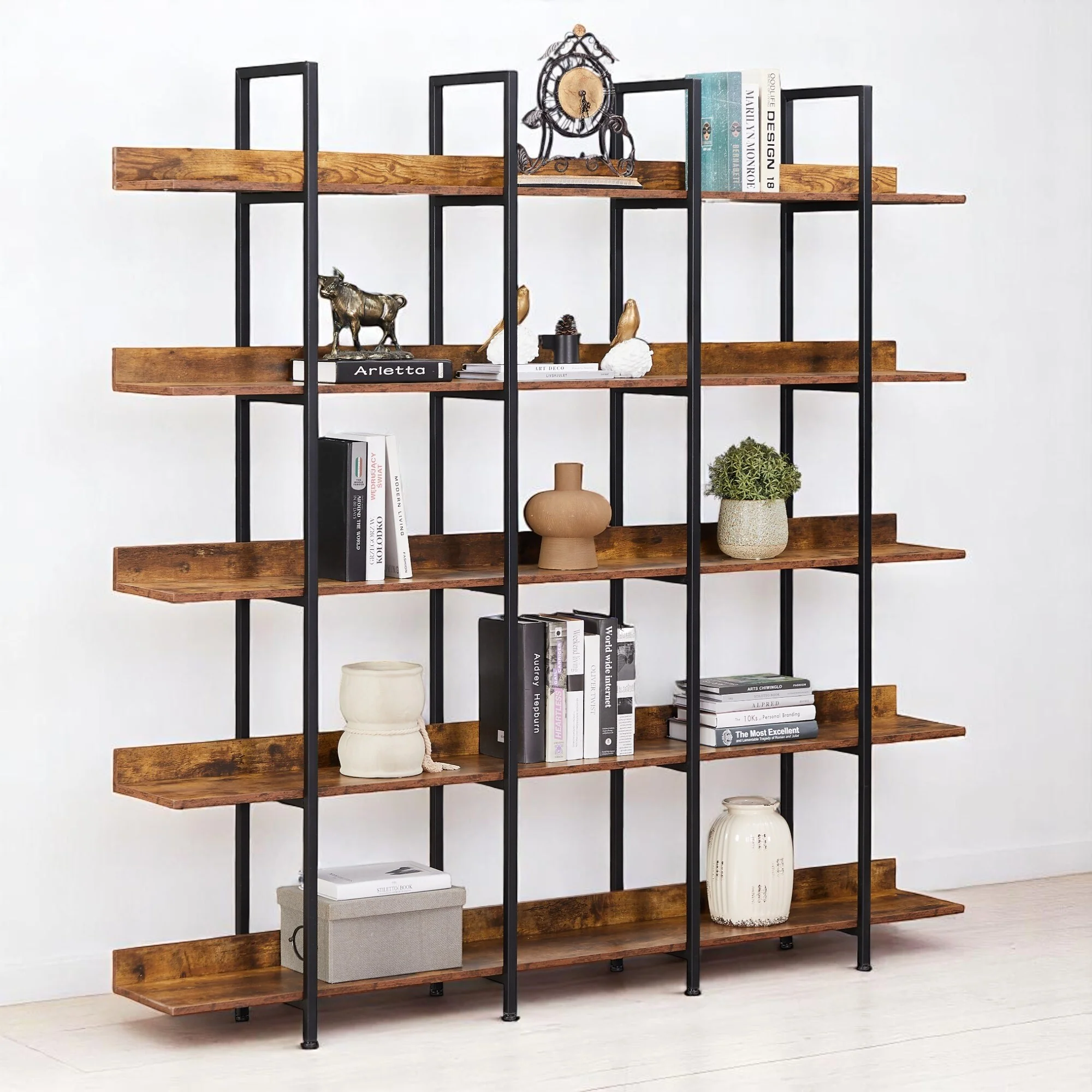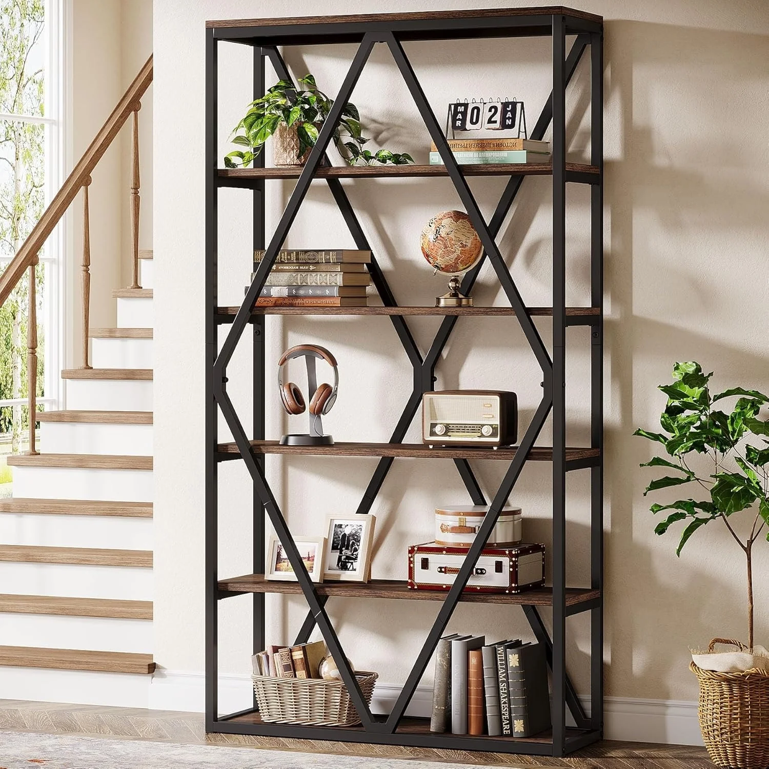 6-Tier Bookcase, 71 Inches Industrial Bookshelves and Bookcases