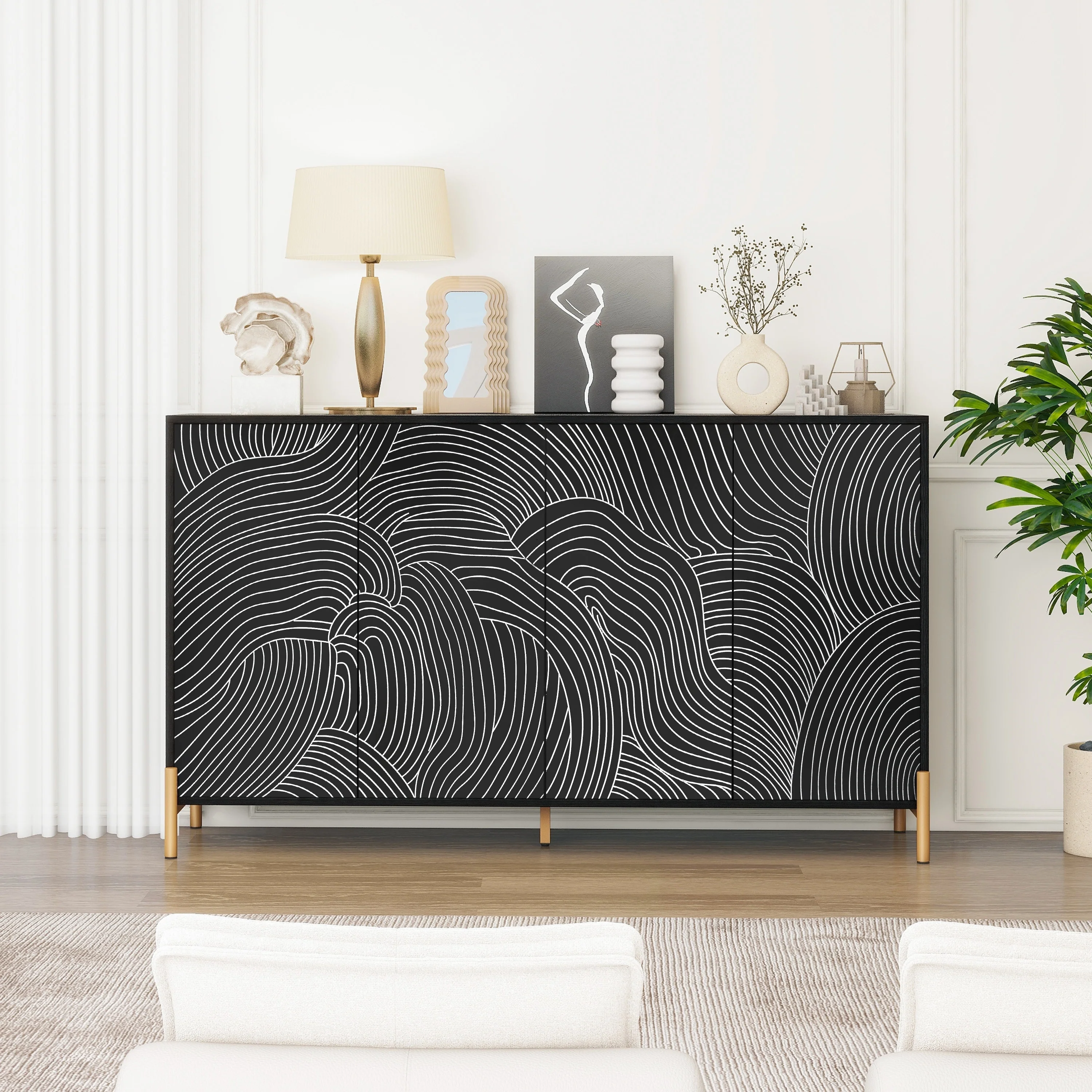 Storage Sideboard Cabinet Wood Buffet Cabinet with Glass Doors