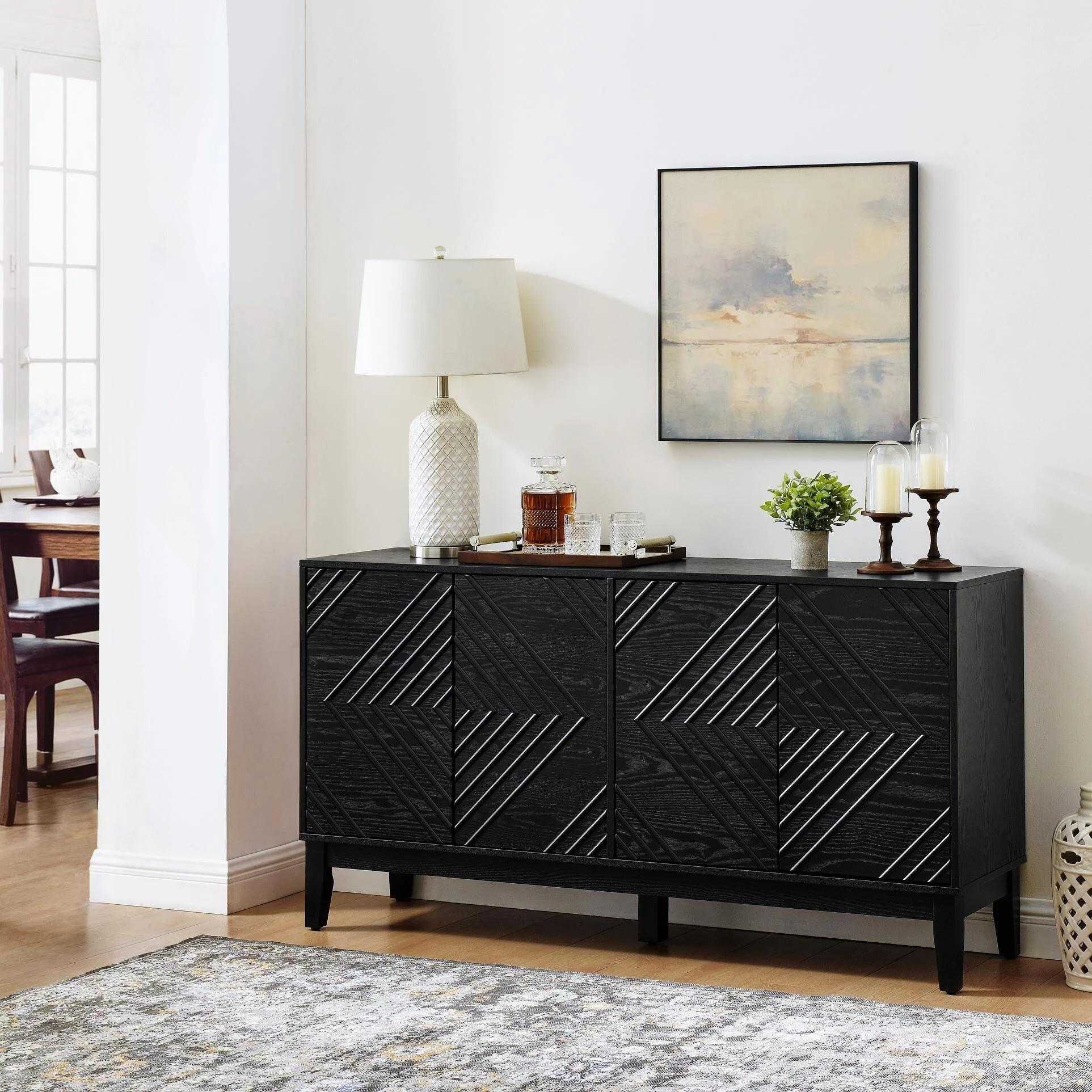 60 Mid Century Buffet Cabinet - Geometric Storage Sideboard