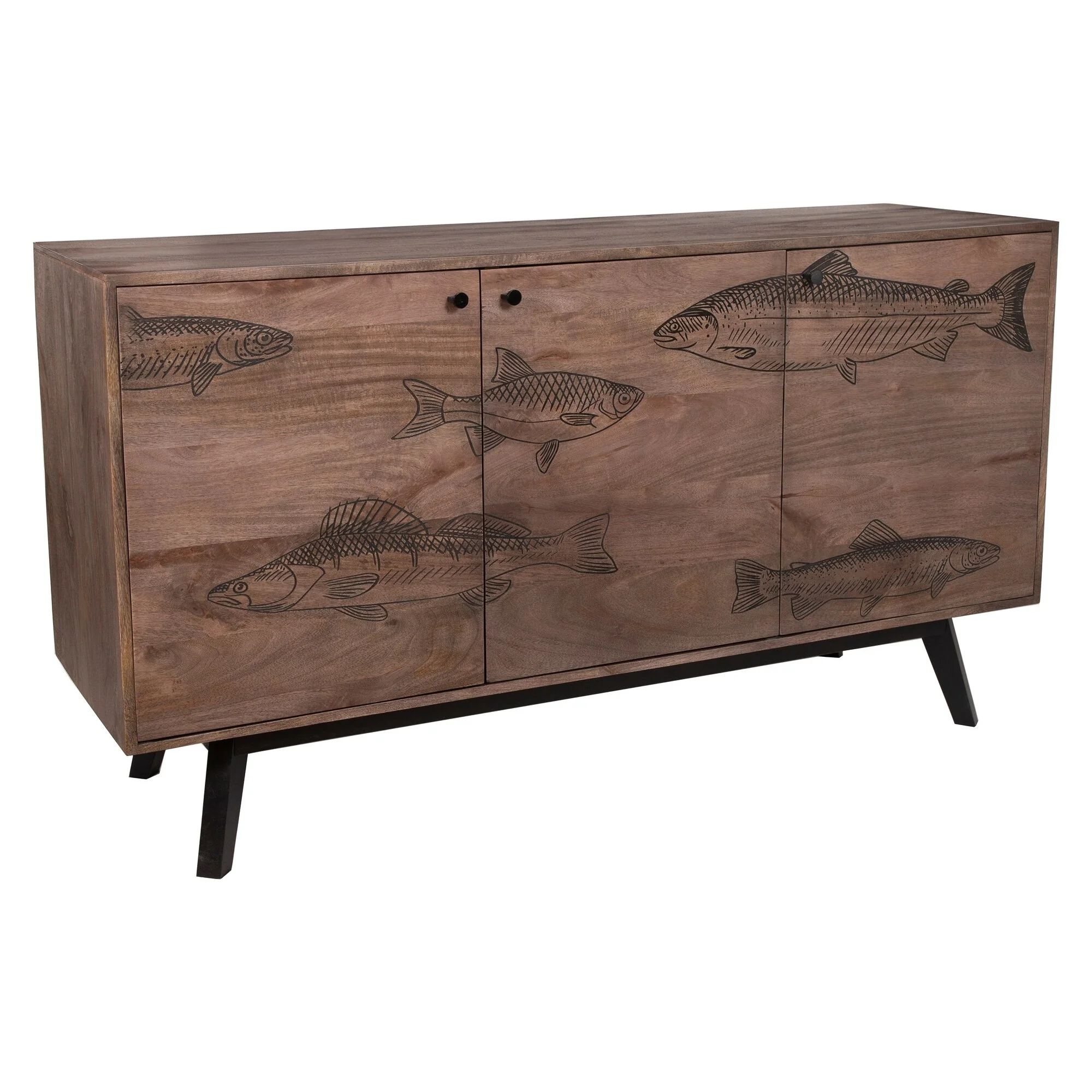 Porter Designs Fish Transitional Solid Wood 3-Door Sideboard, Gray