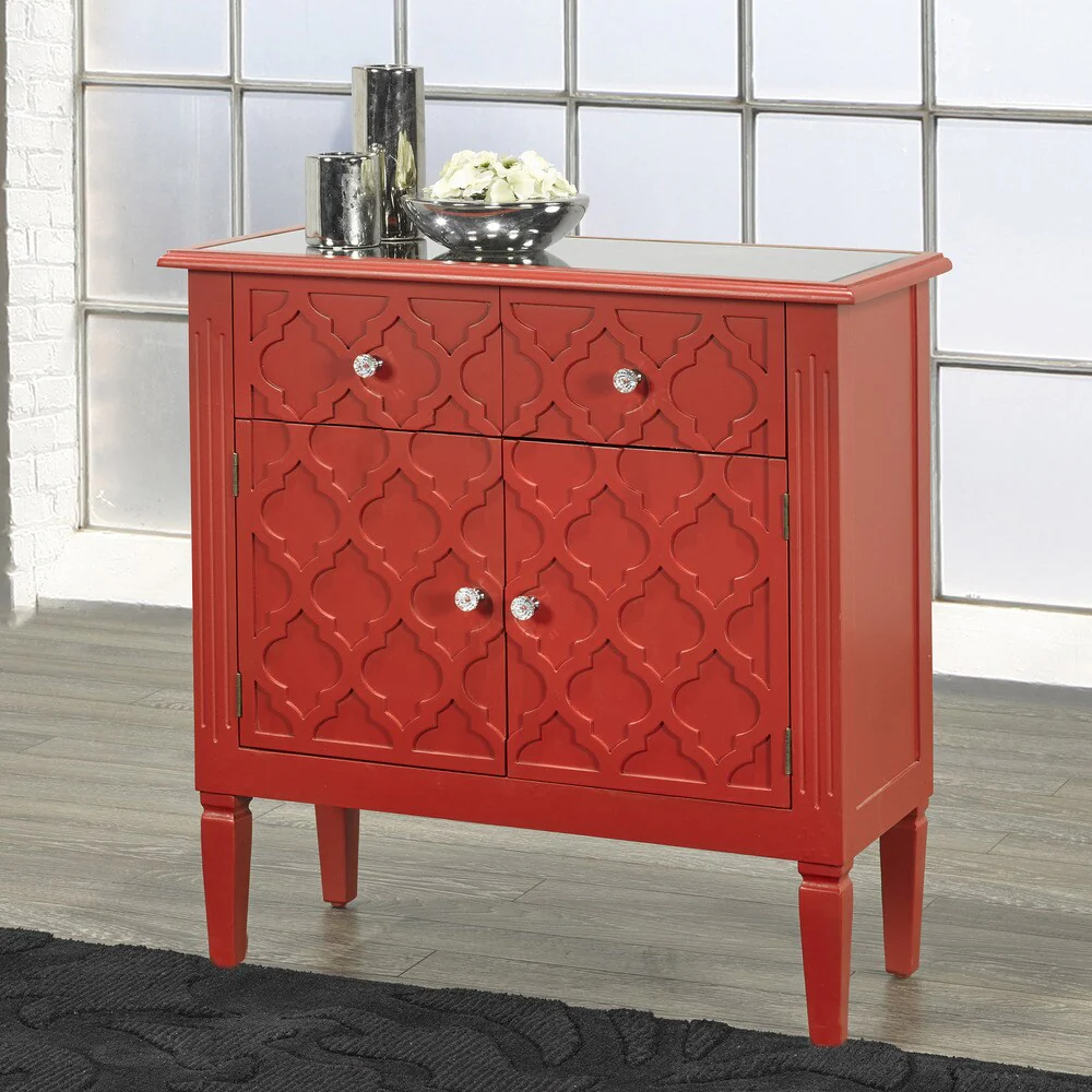 Sophia Wood Overlay Red 2-Drawer Accent Table With Cabinet