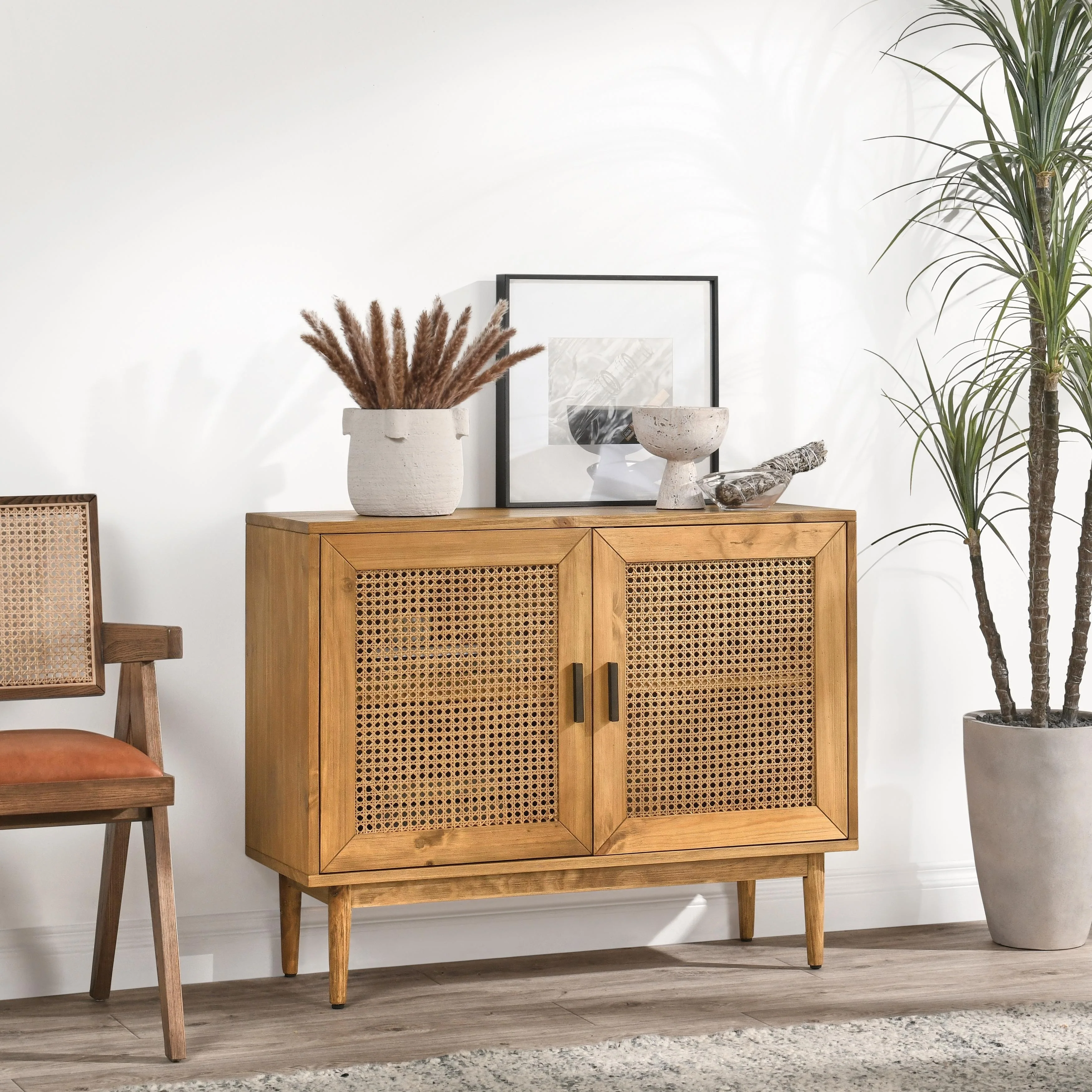 Modern Farmhouse Style Wooden Cabinet with Sturdy Frame