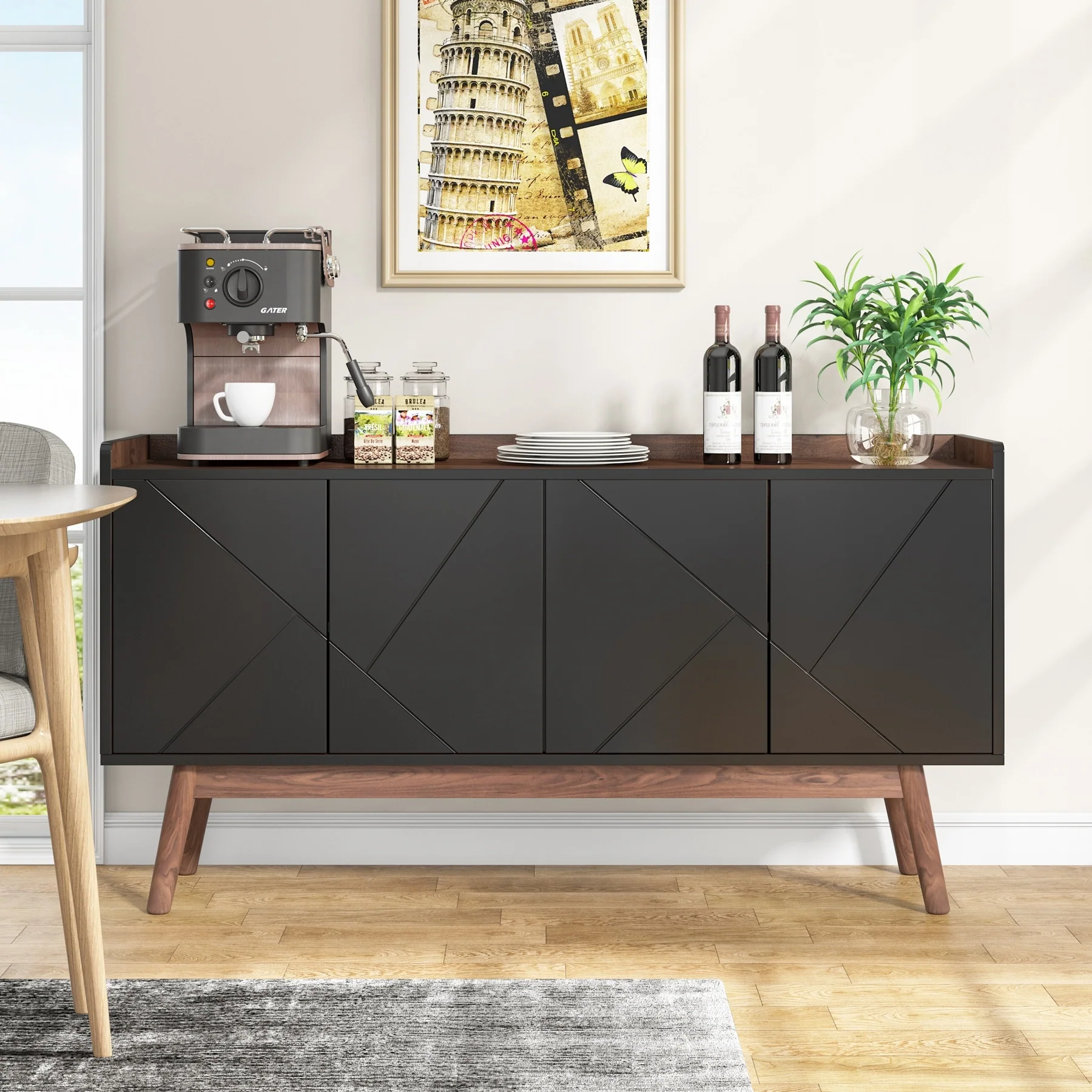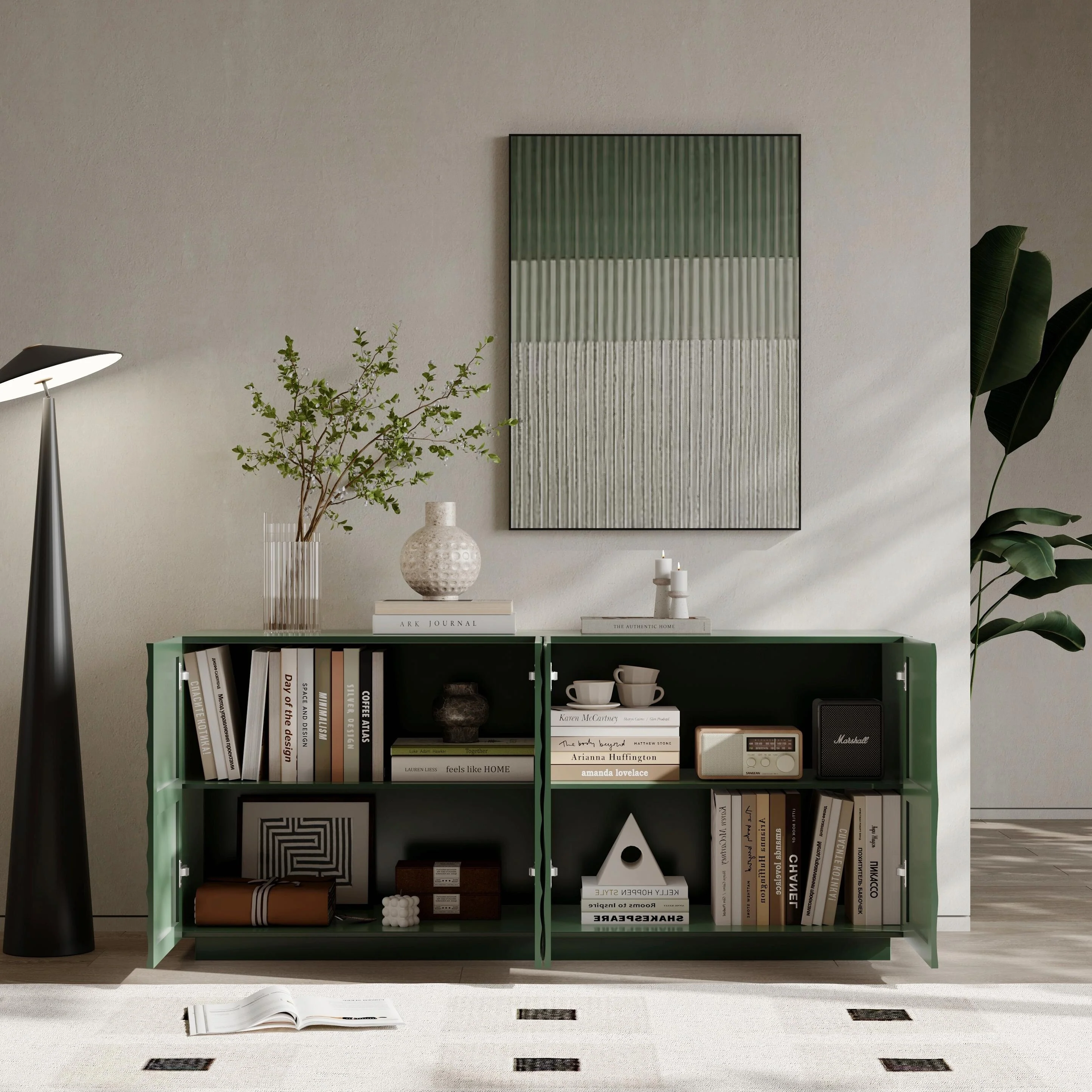 4-Door Storage Cabinet - Modern Sideboard with Suspended Base