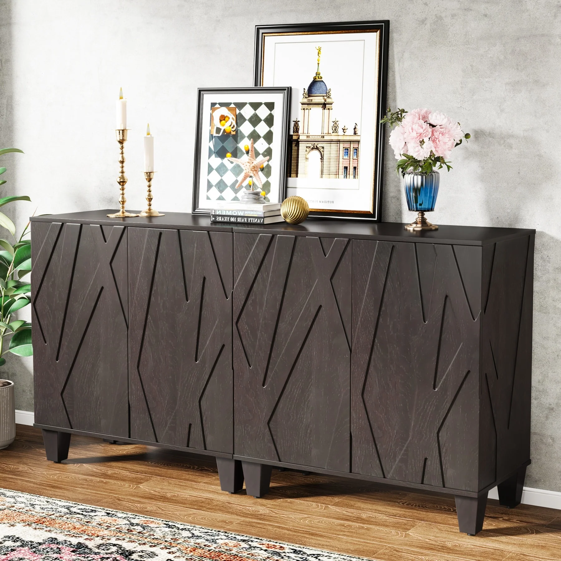 63 Striped Sideboard Buffet Cabinet with Adjustable Shelves