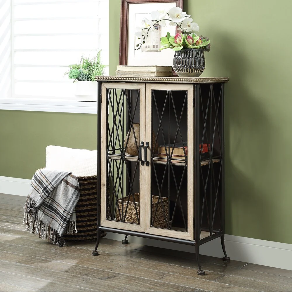 2-Door Accent Wooden Style Storage Cabinet with Shelves
