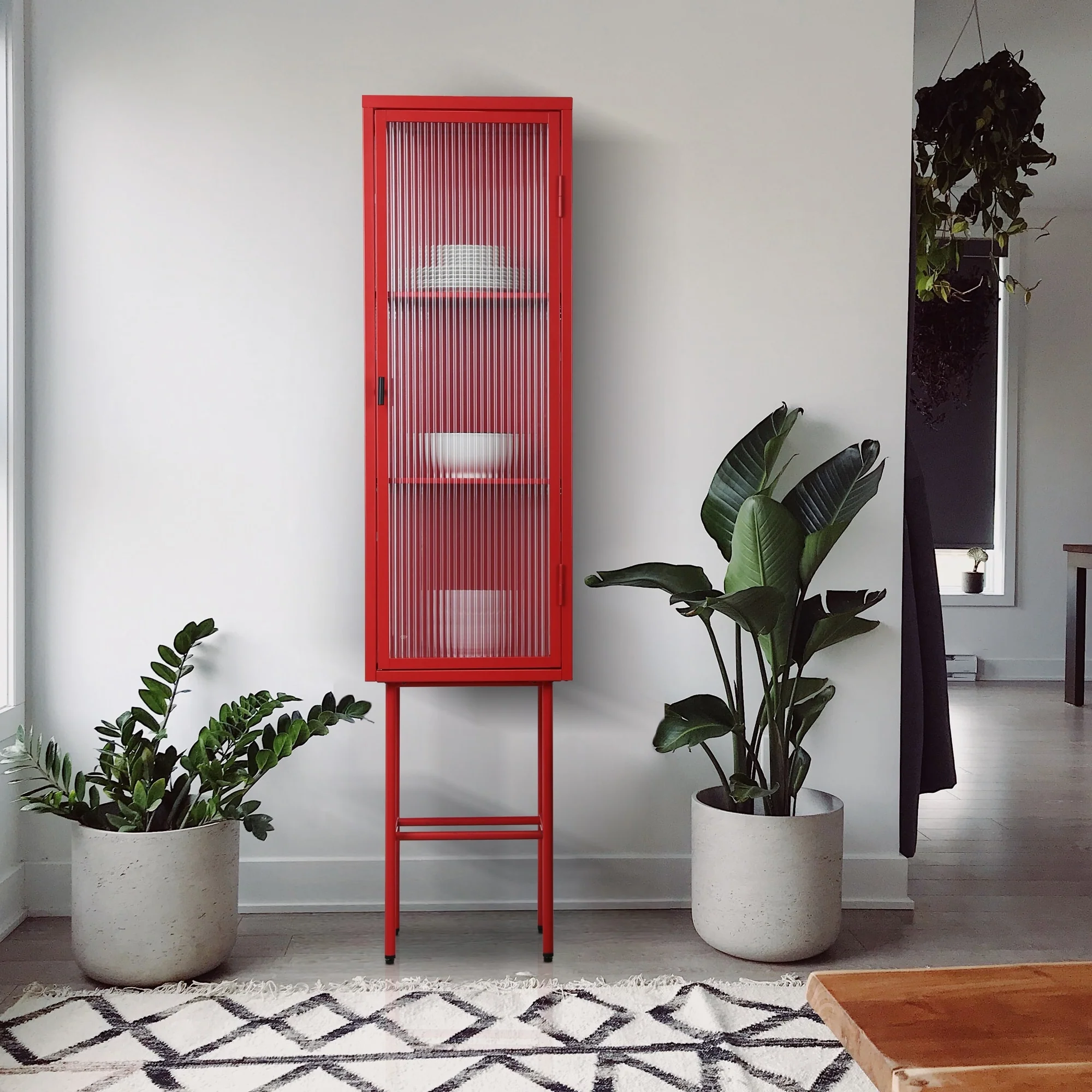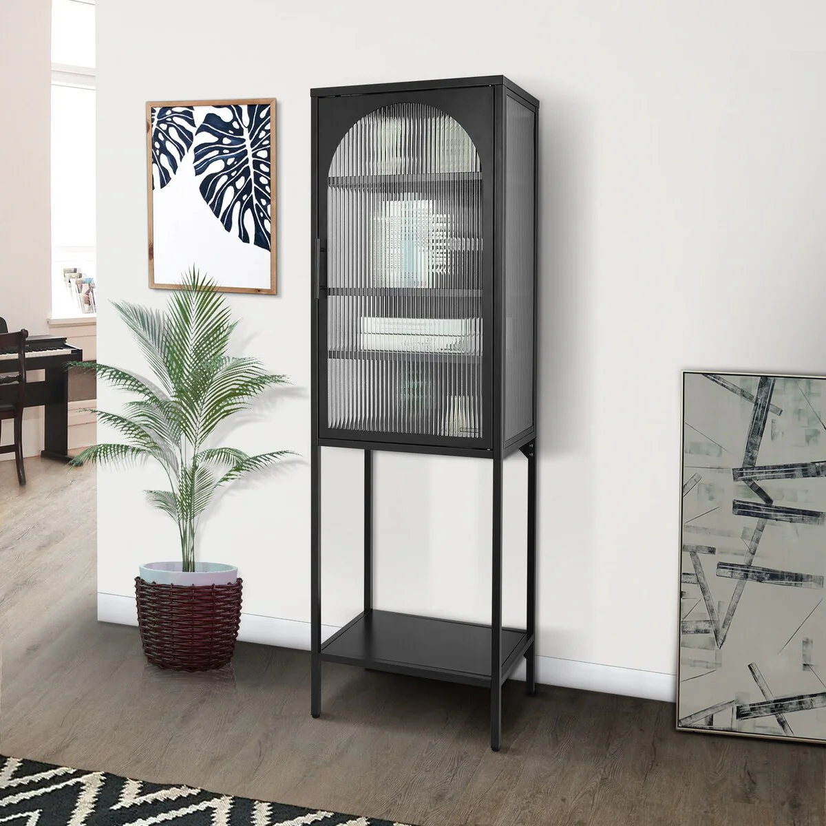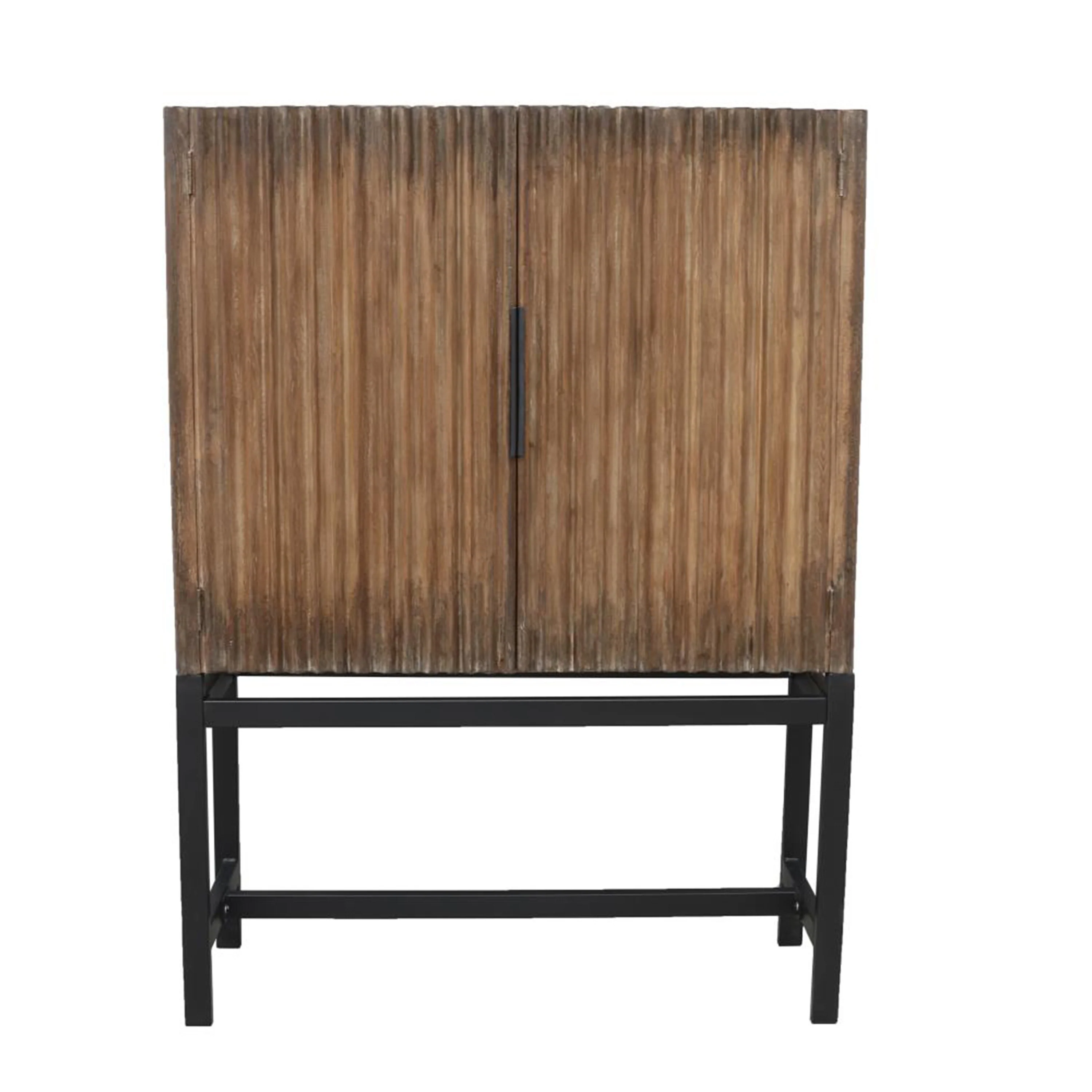 Rapy Wine Cabinet, 2 Door, Black Iron Base, 66 Inch Classic Brown