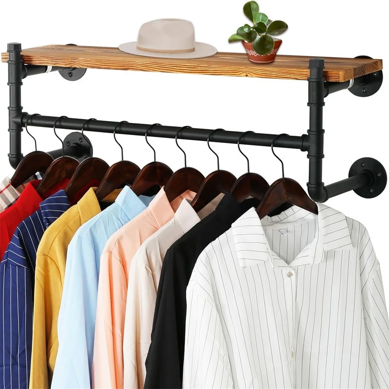 Wall Mounted Clothes Rack with Shelf