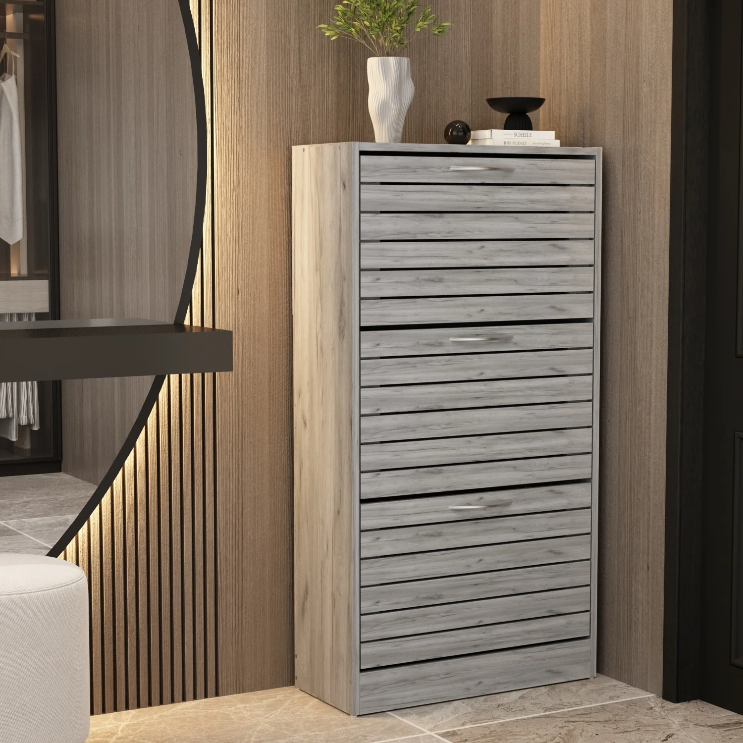 24 Pairs Shoe Storage Cabinet Rack with 2 Flip Drawers - 2-Tier
