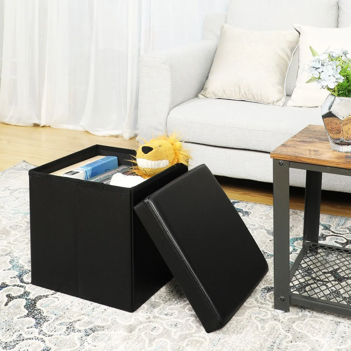 SONGMICS 15 x 15 x 15 Inches Folding Storage Ottoman