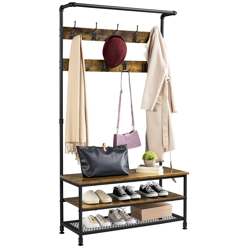 Yaheetech Entryway Hall Tree with Storage Shelves and Coat Hooks