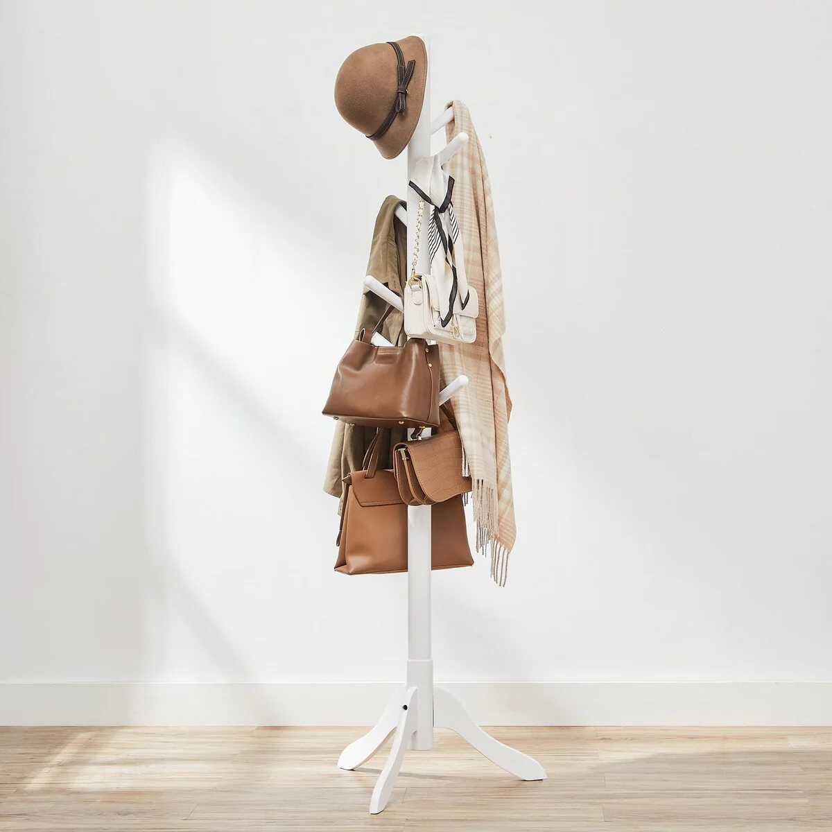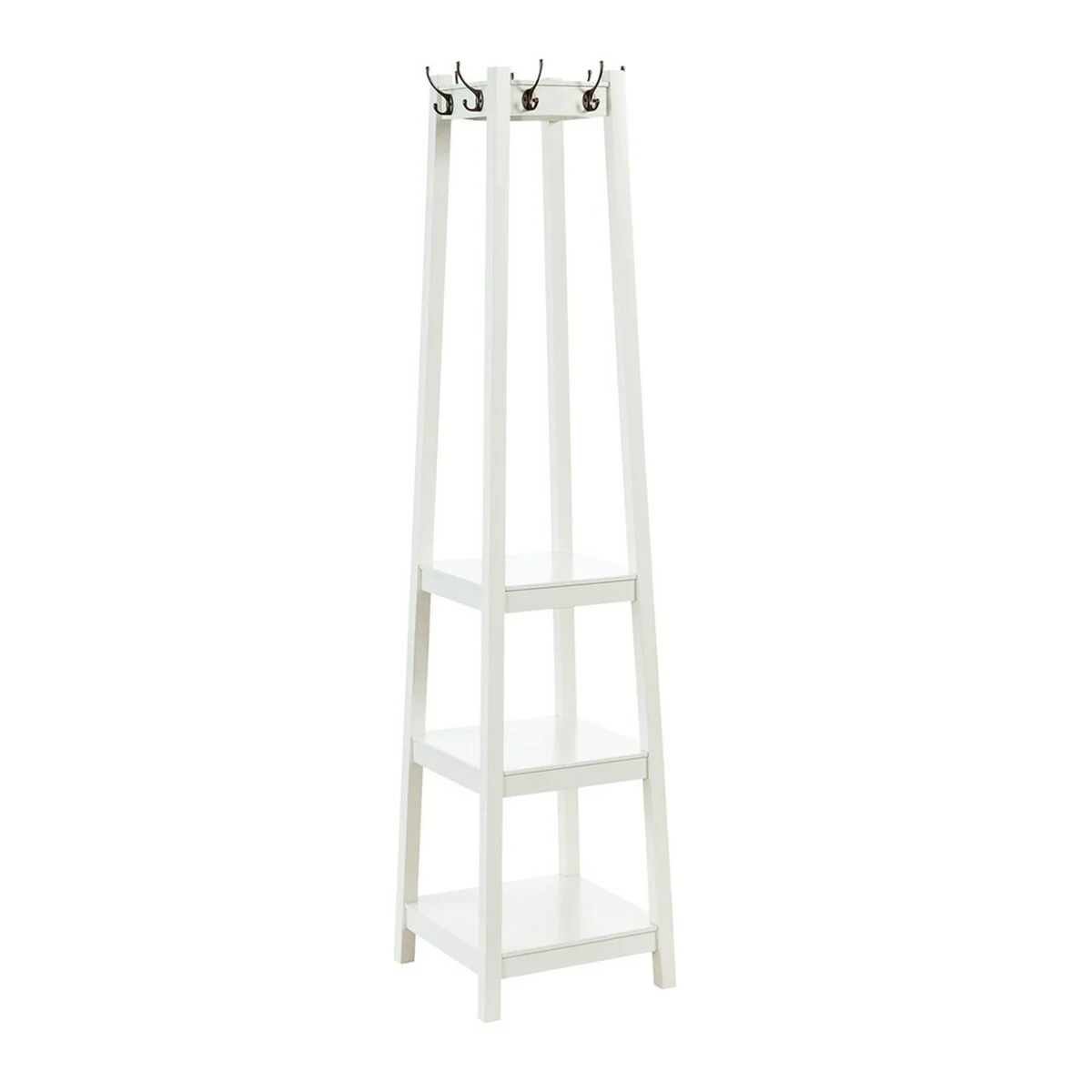 Tapered Design Wooden 3 Tier Coat Rack with 8 Dual Hooks, White