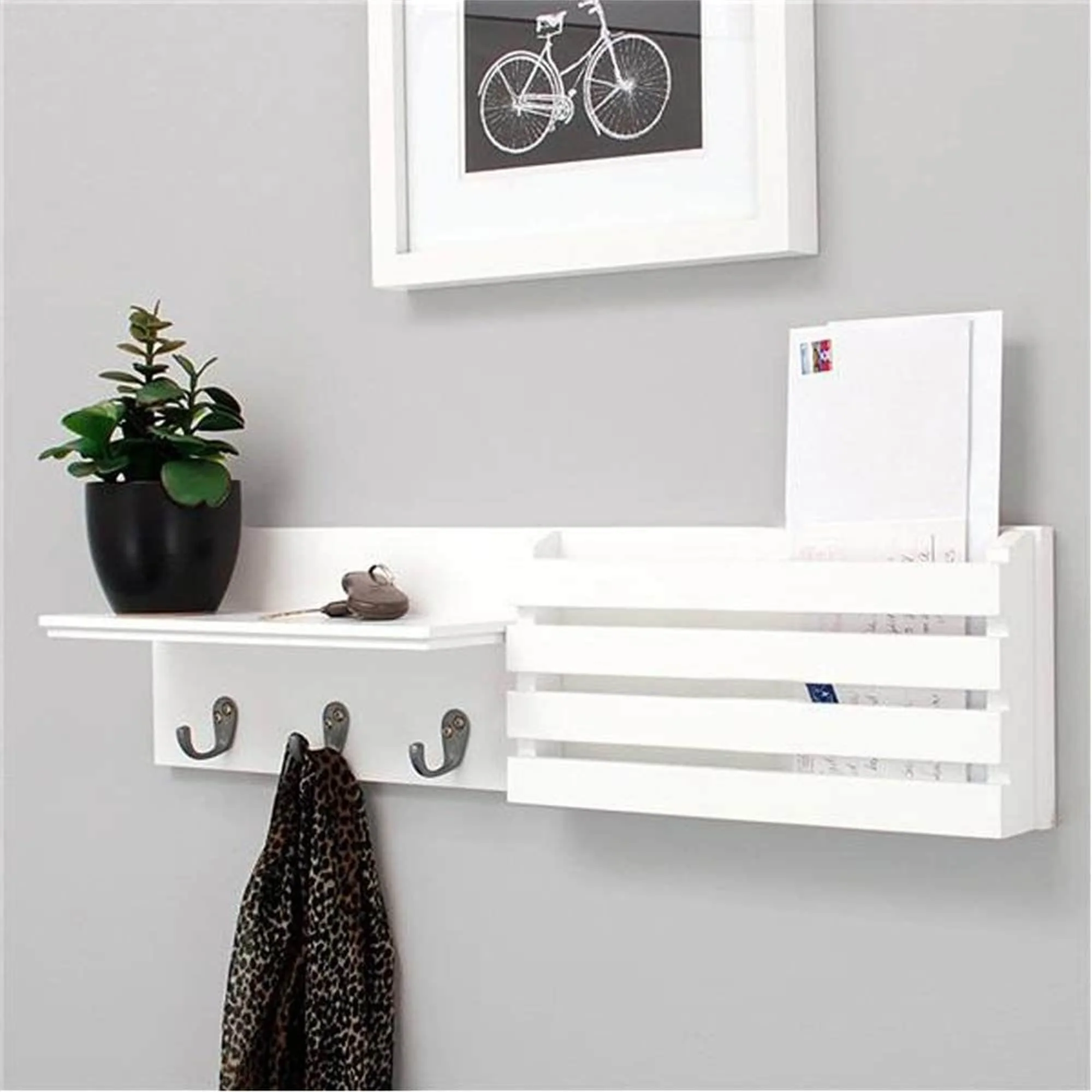 Mail Holder and Coat Key Rack Wall Shelf with 3 Hooks, White