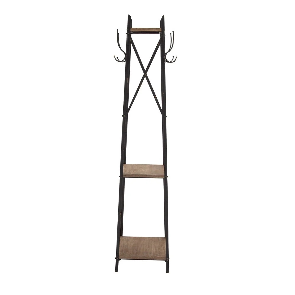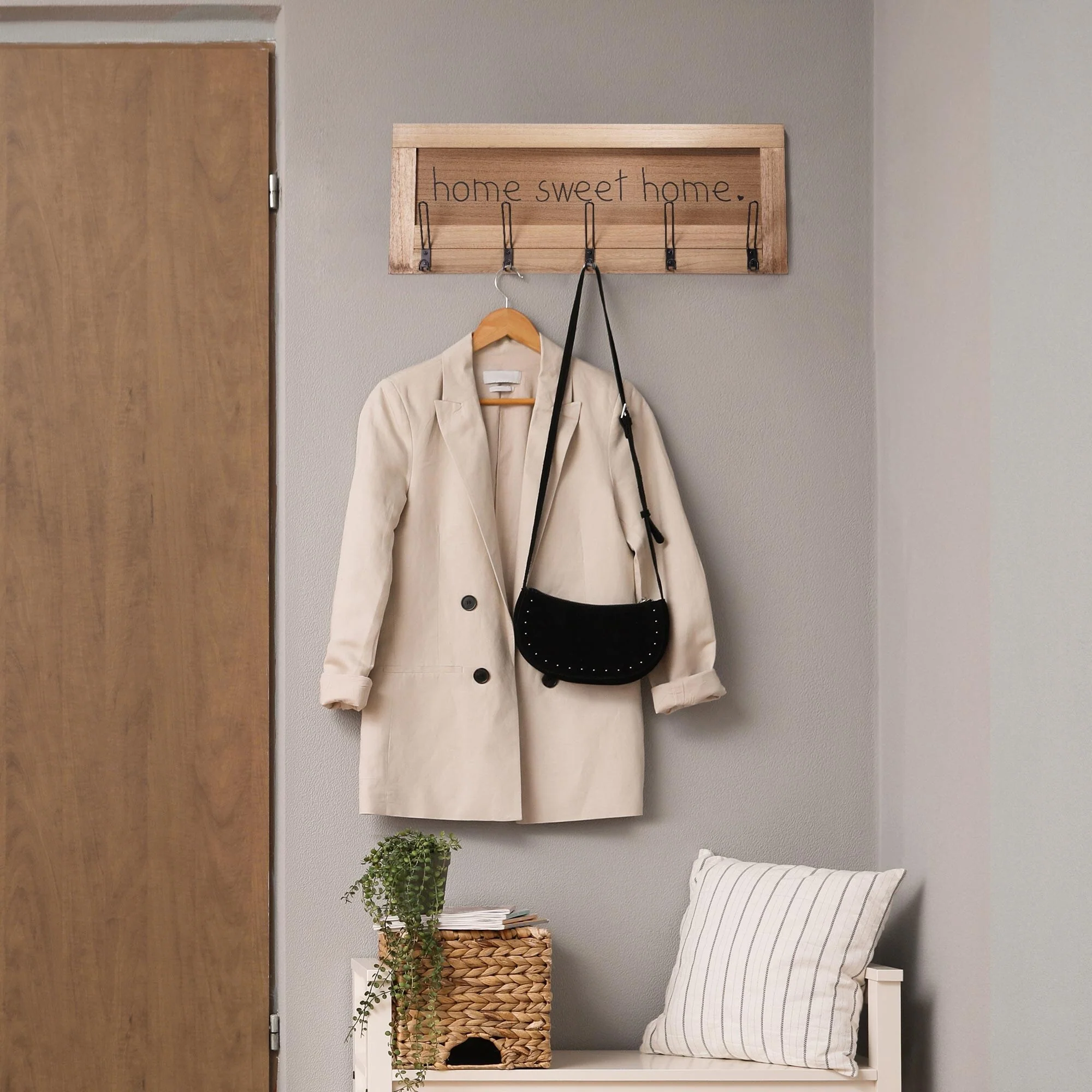Rustic Mahogany Brown Wood Hanging Coat Rack