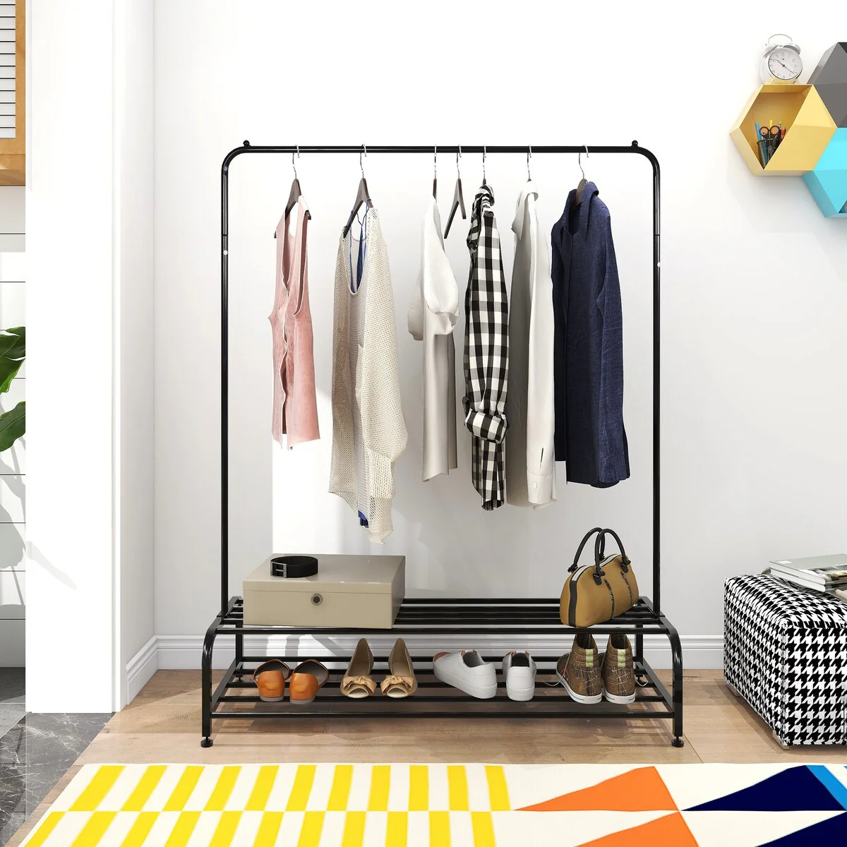 Metal Clothing Garment Rack With Shelves