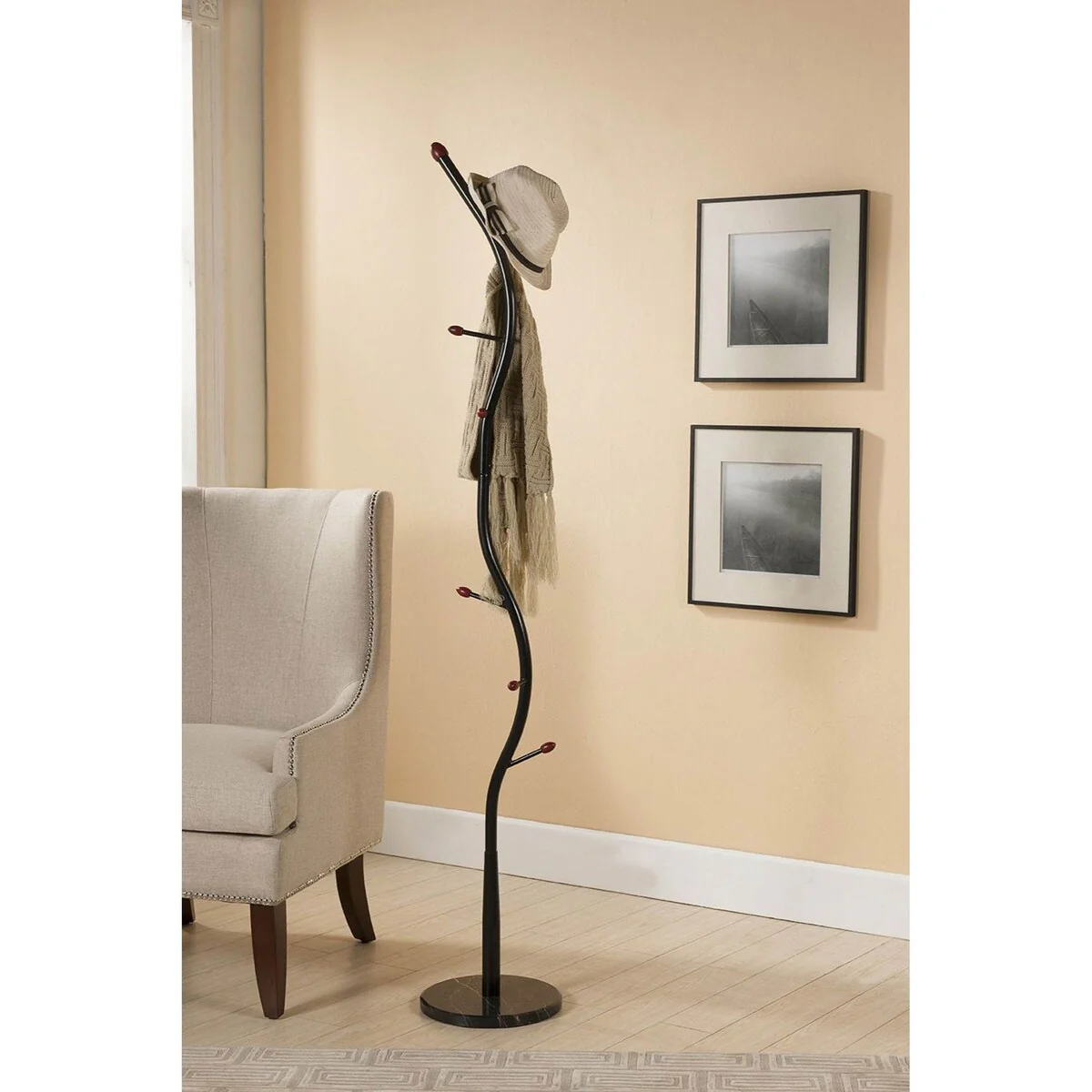 Heather Sandy Black Coat Rack with 8 Flared Coat Hooks