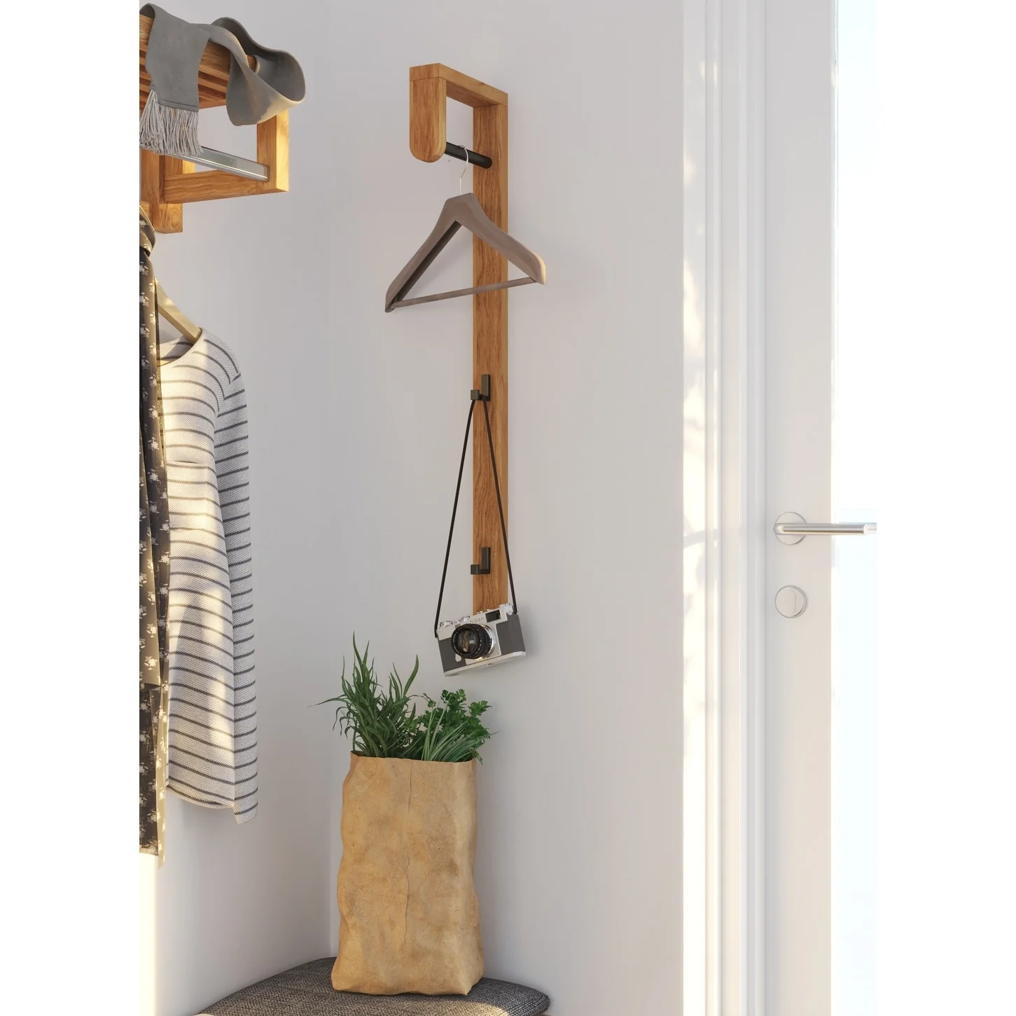 Scandinavian Solid Oak Coat Rack