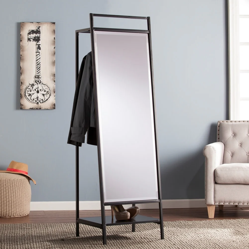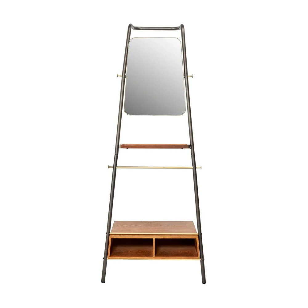 Brady Metal and Wood Leaning Storage Coat Rack with Mirror