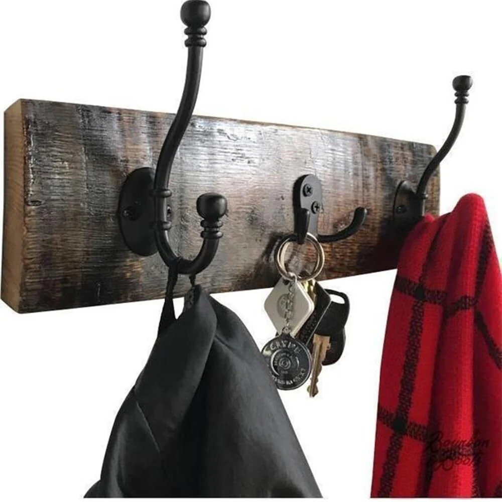 Reclaimed Bourbon Barrel Stave Oak Coat, Key, and Hat Rack