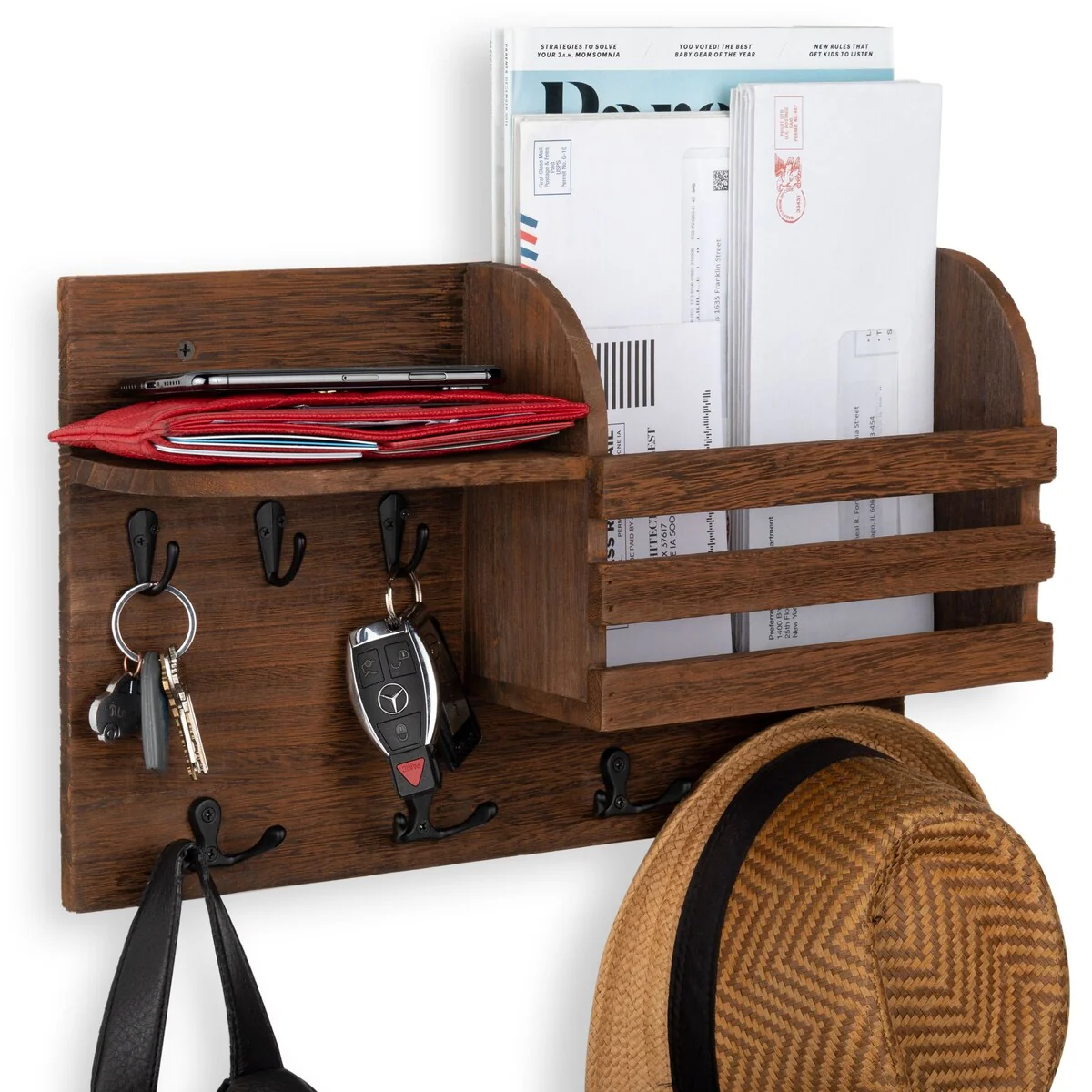 Home Source Millwright 6-hook Mahogany Coat Stand