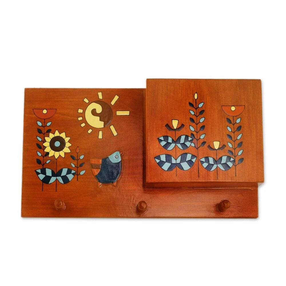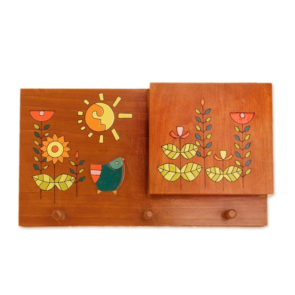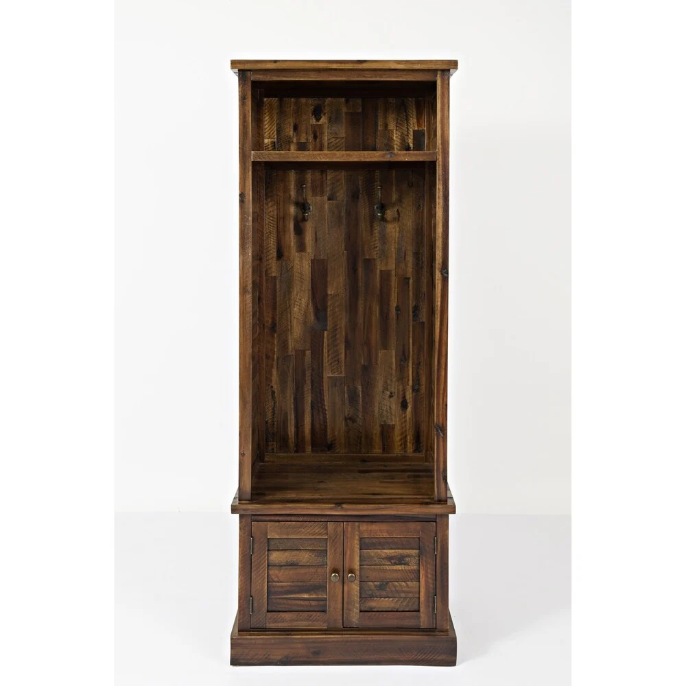 Transitional Style Wooden Hall Tree with Two Hooks, Oak Brown