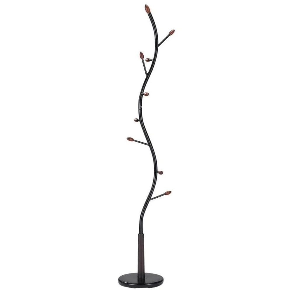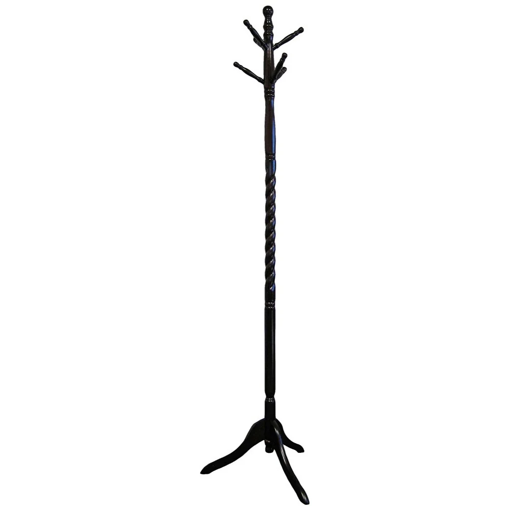 Sturdy Wooden Twist Hall Tree Coat Rack, Dark Brown