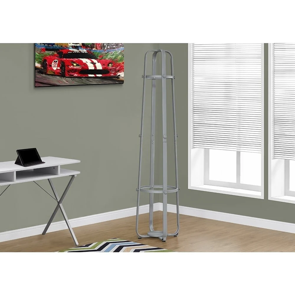 Coat Rack - 72H / Silver Metal with an Umbrella Holder