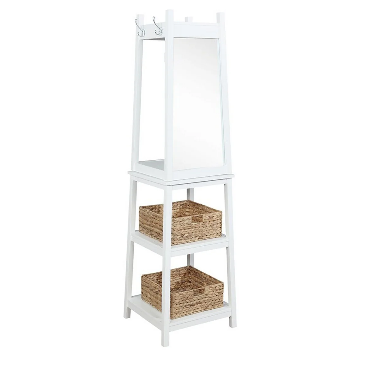 72 Inch Wooden Coat Rack with 8 Hooks and 2 Shelves, White