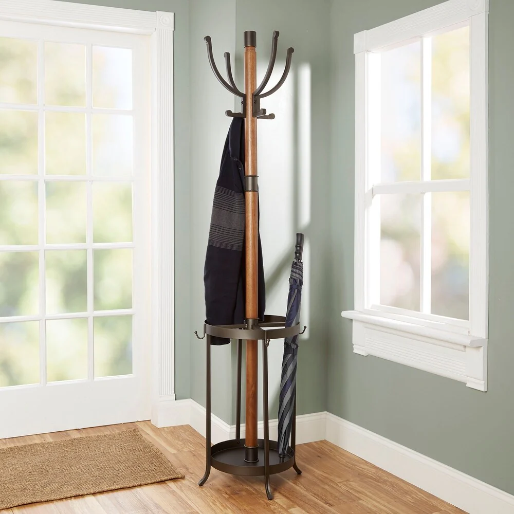 Dawson Wood and Metal Coat Rack with Umbrella Stand