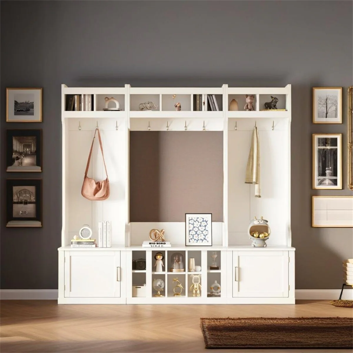 Wide Design Hall Tree with Storage and Bench