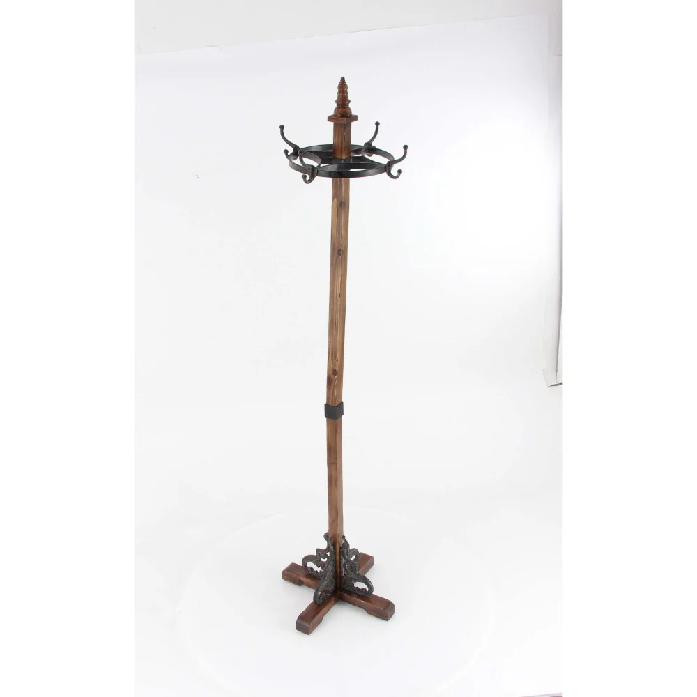 Benzara Liege Brown Wood Metal Coat Rack