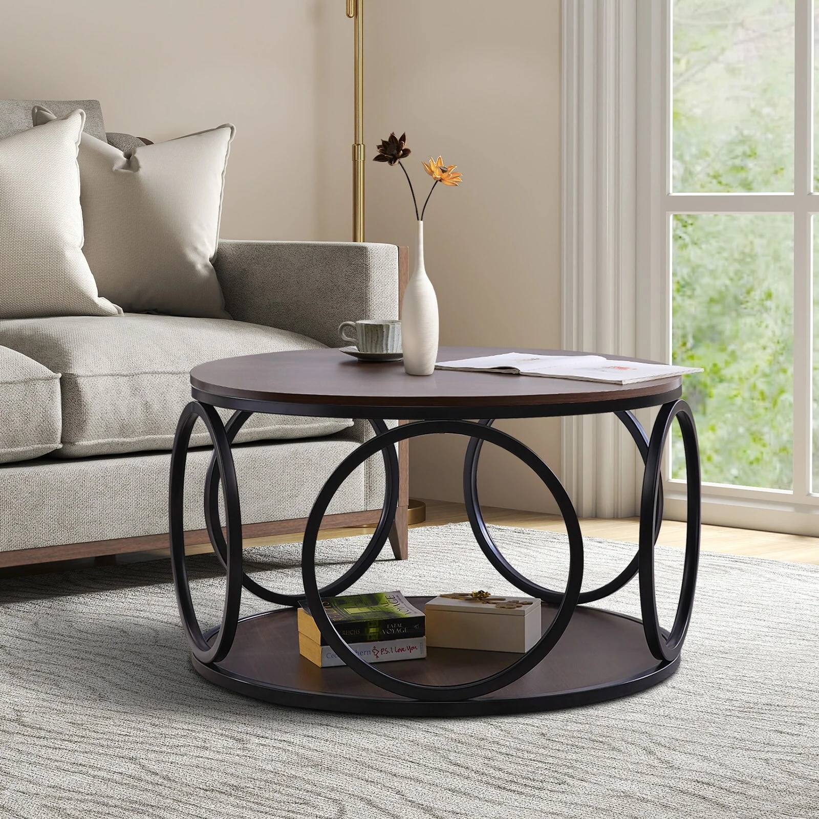 2-Tier Round Coffee Table - 31.5Dia Top/Base x 18.7H