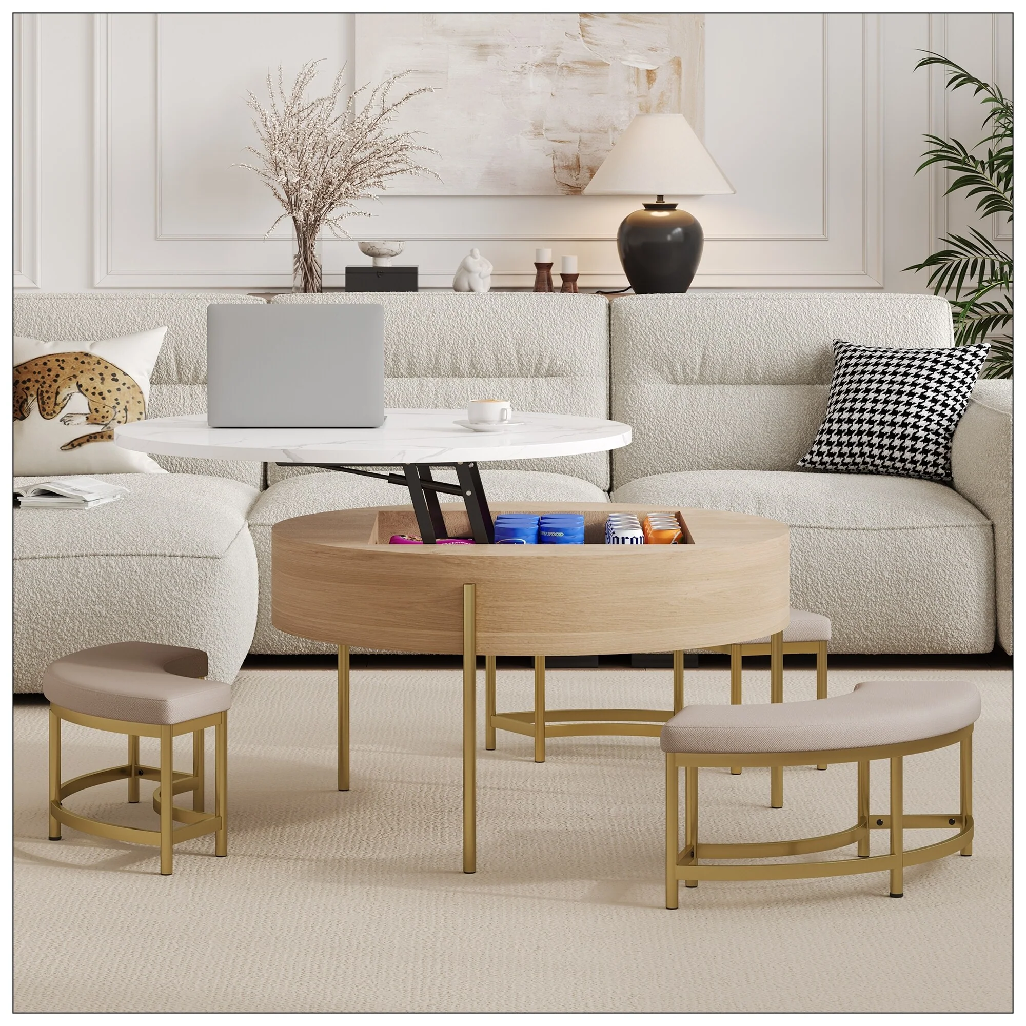 Modern Round Lift-Top Coffee Table with Storage