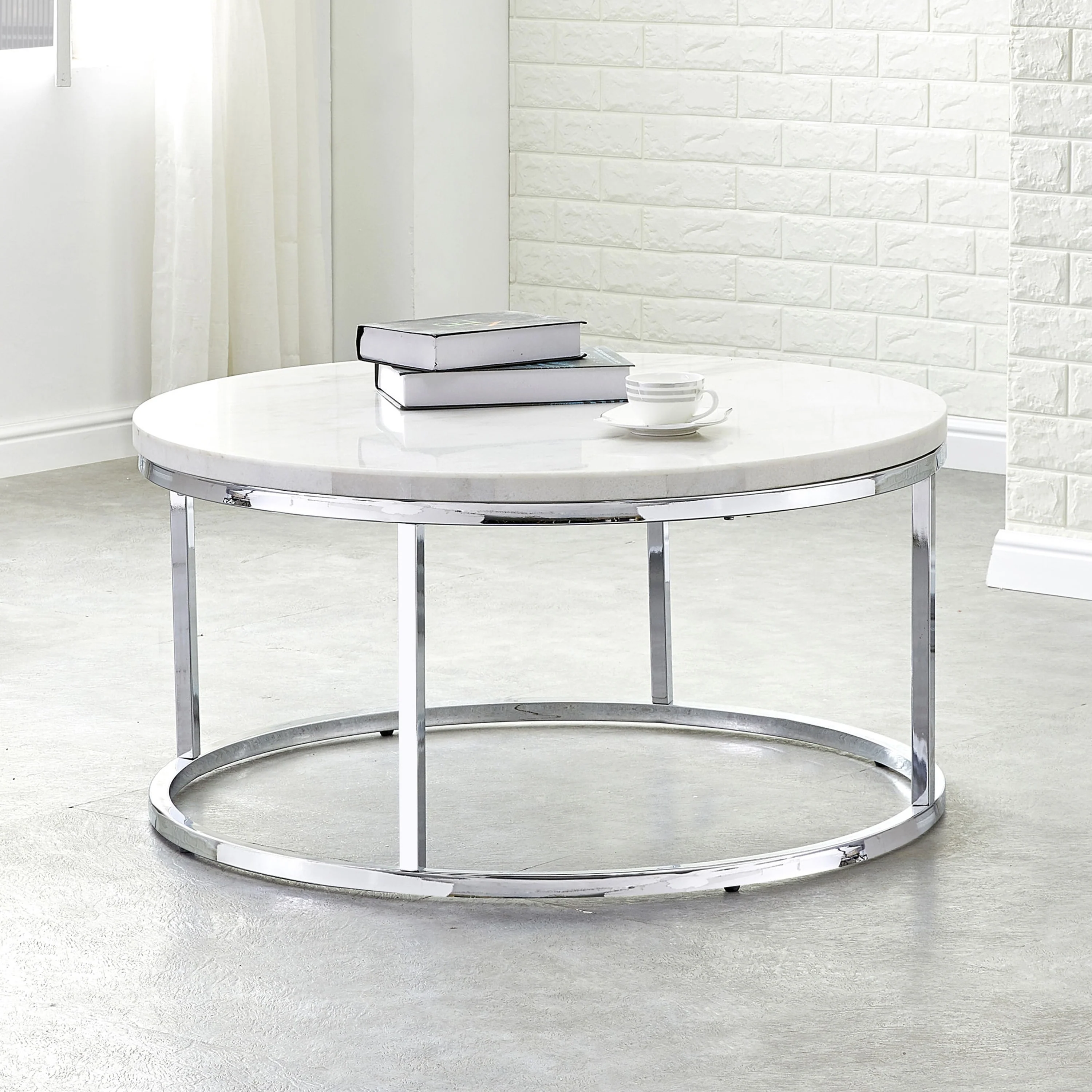 Steve Silver Eden White Marble Top Round Coffee Table
