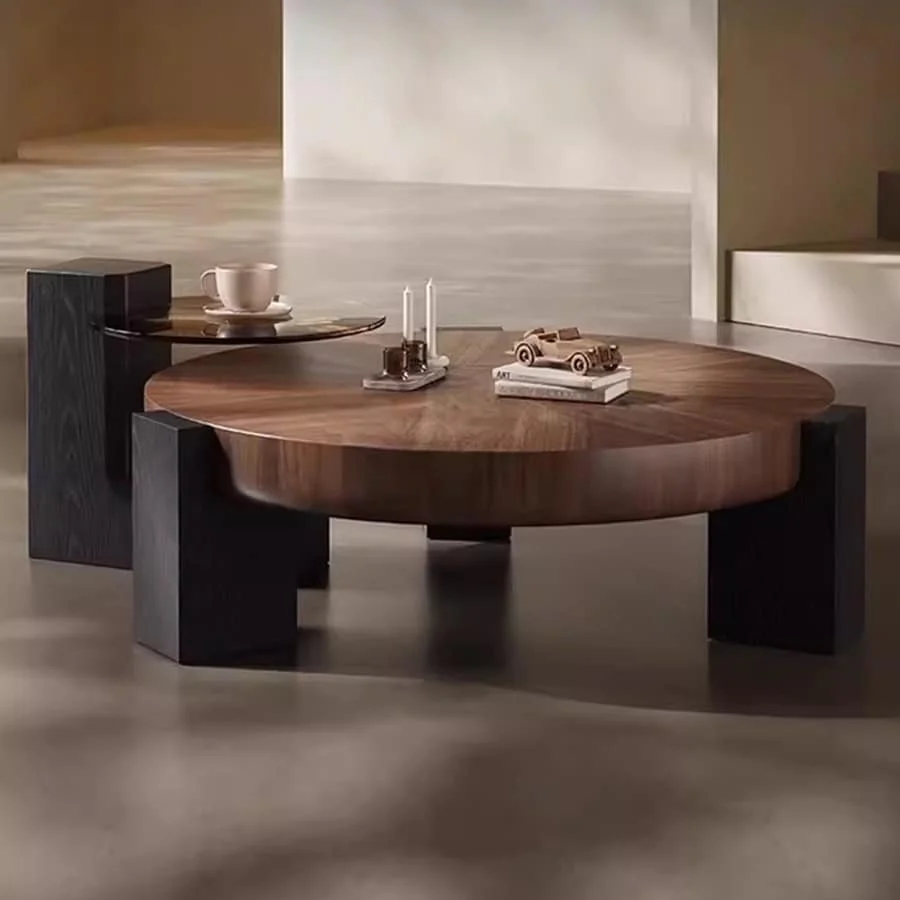 Modern Round Wood Coffee Table with Accent End Table, Free Shipping