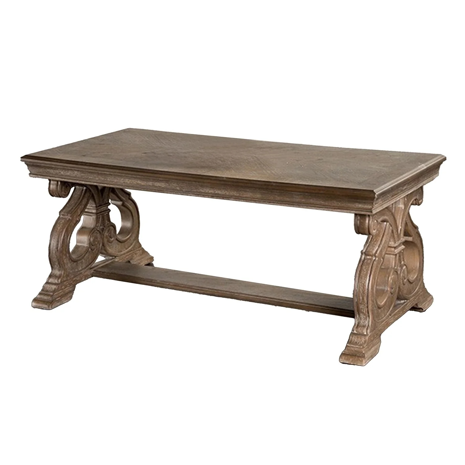 Wooden Coffee Table with Scroll Legs in Oak