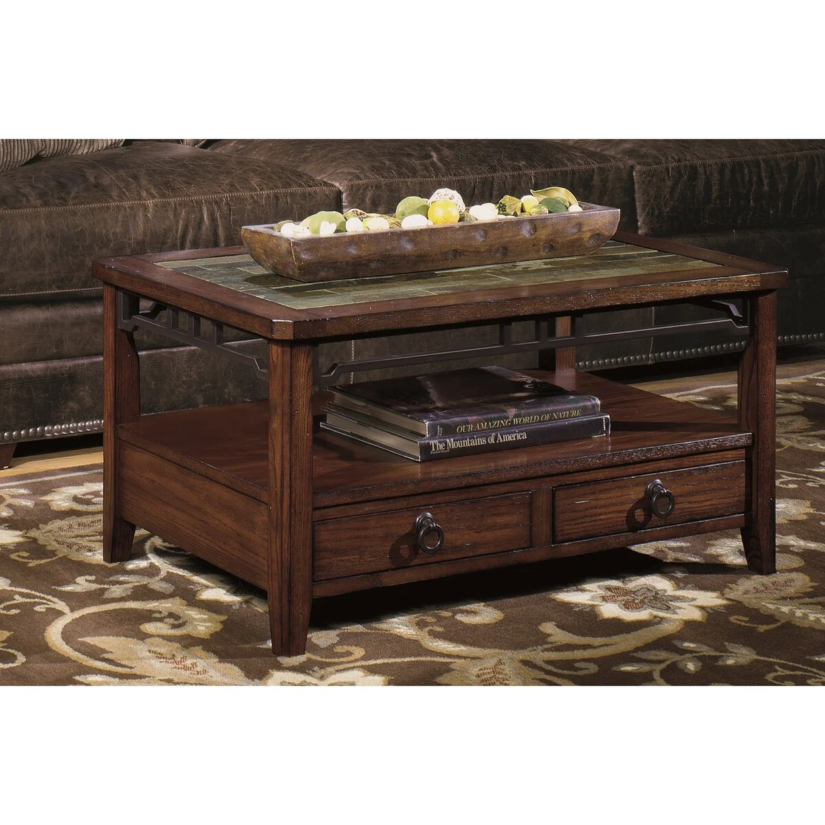 Gracewood Hollow Wood and Slate Rectangular Coffee Table