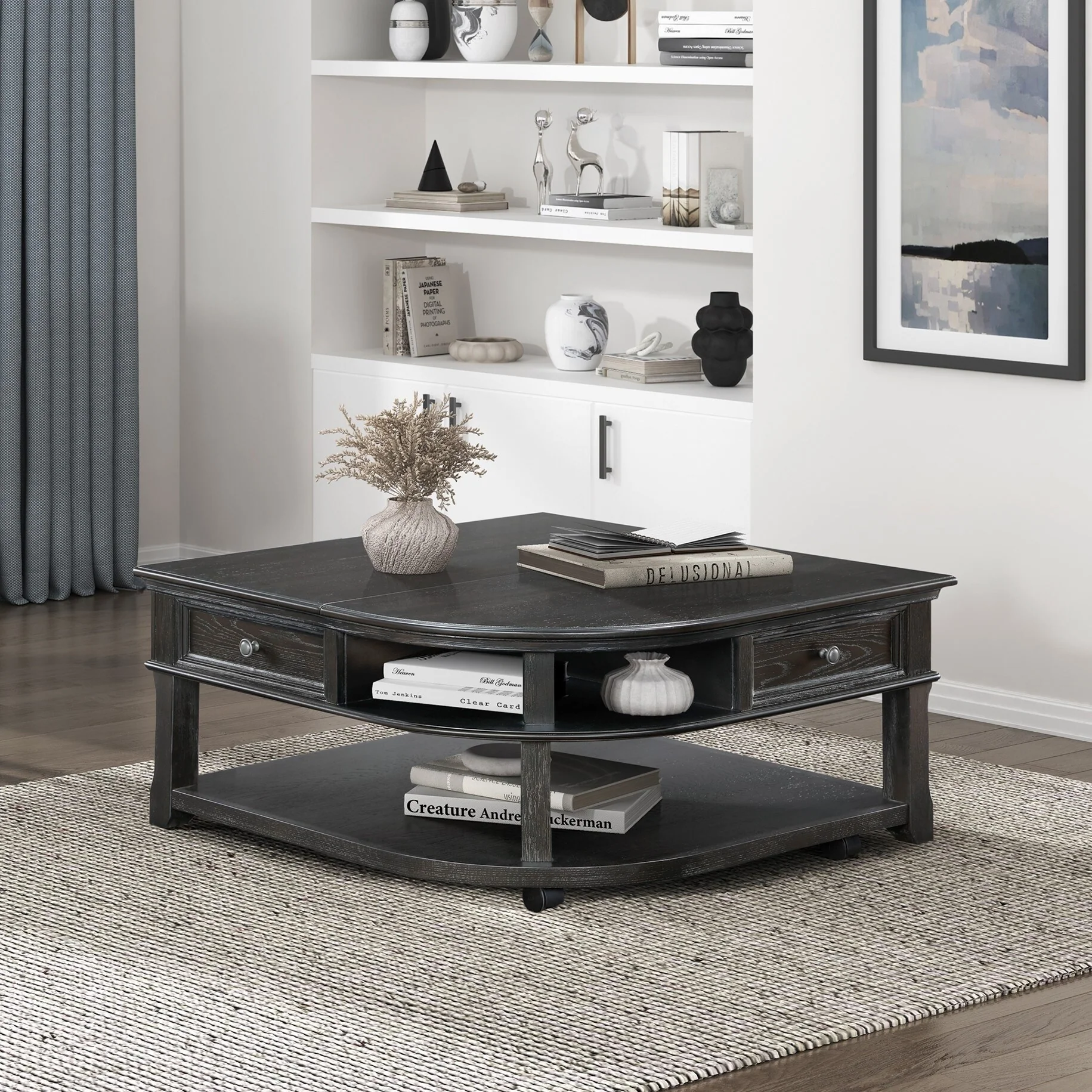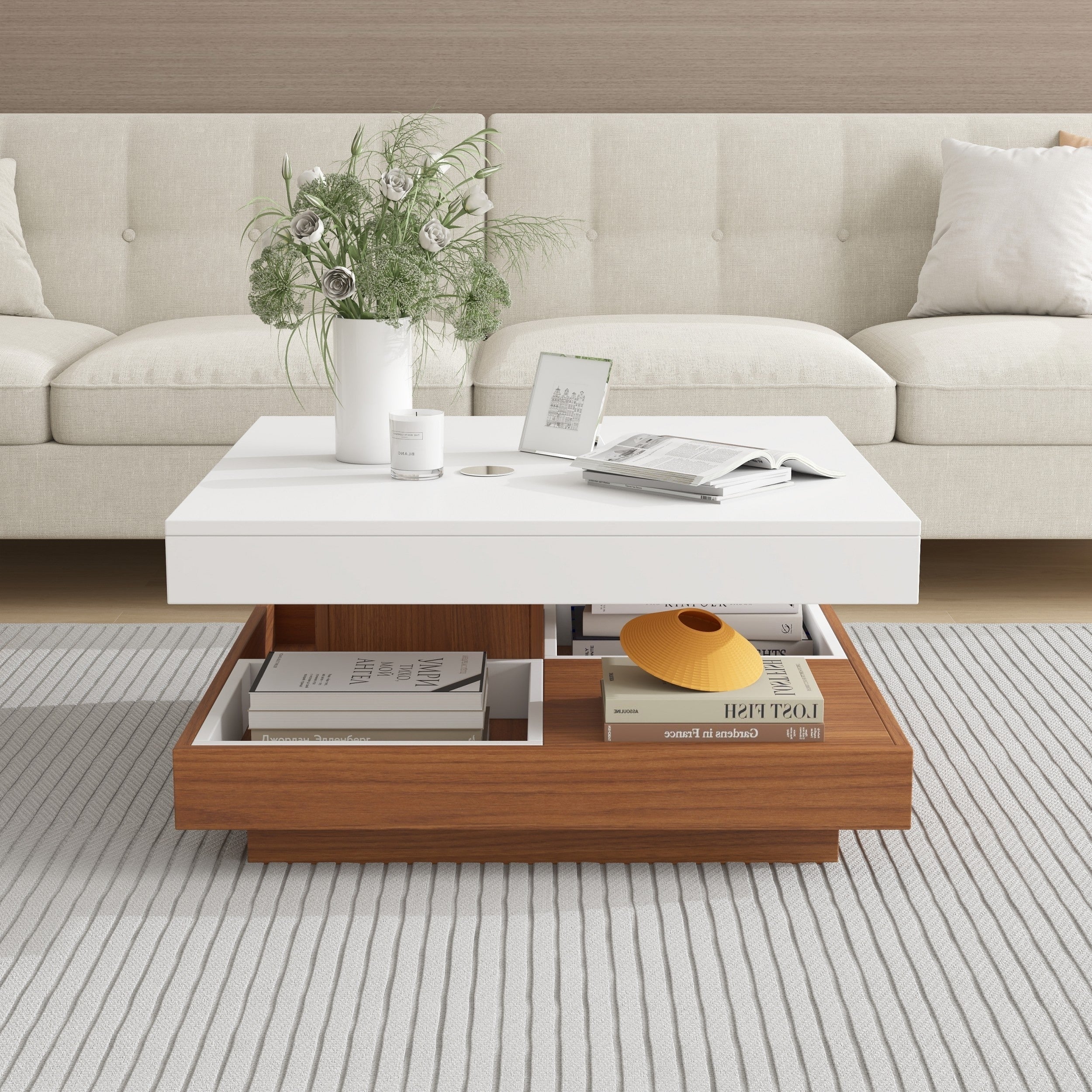 Living Room Coffee Table Storage Drawer Lift Top Open Shelves