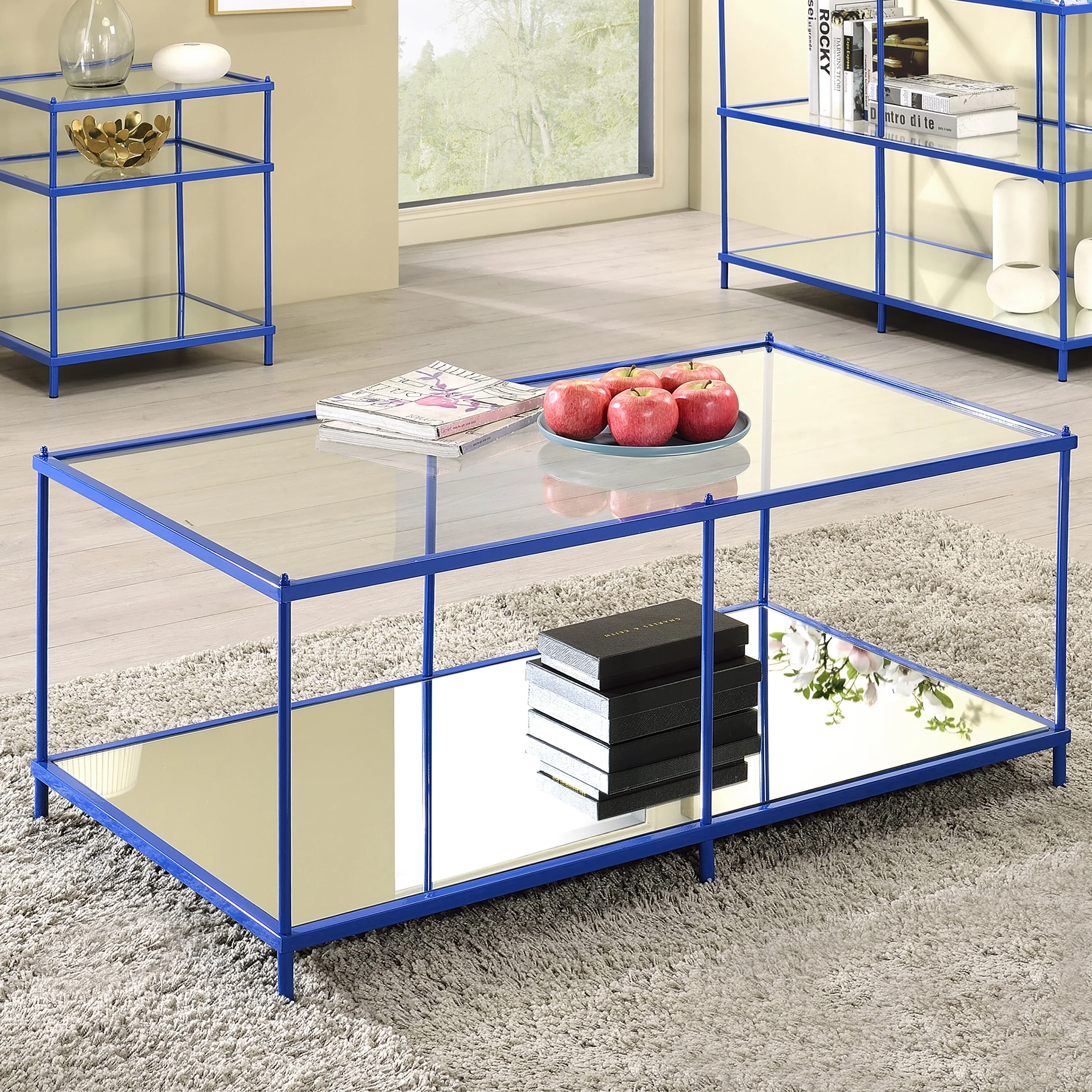 45.2 Inch Wood Coffee Table, Center Table with 2 Tier Shelves