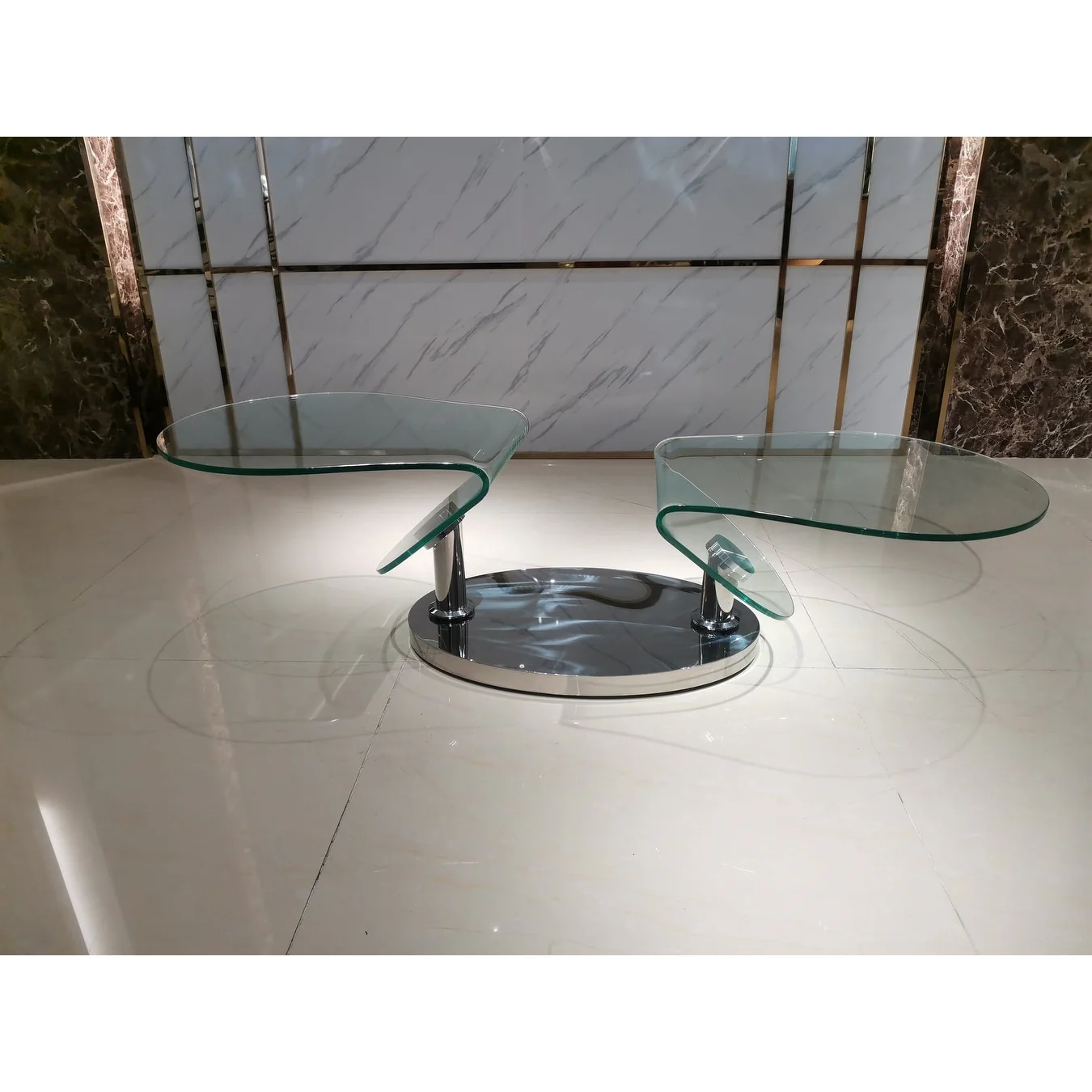 Modern Glass Coffee Table X-Cross Solid Wood Base End Table