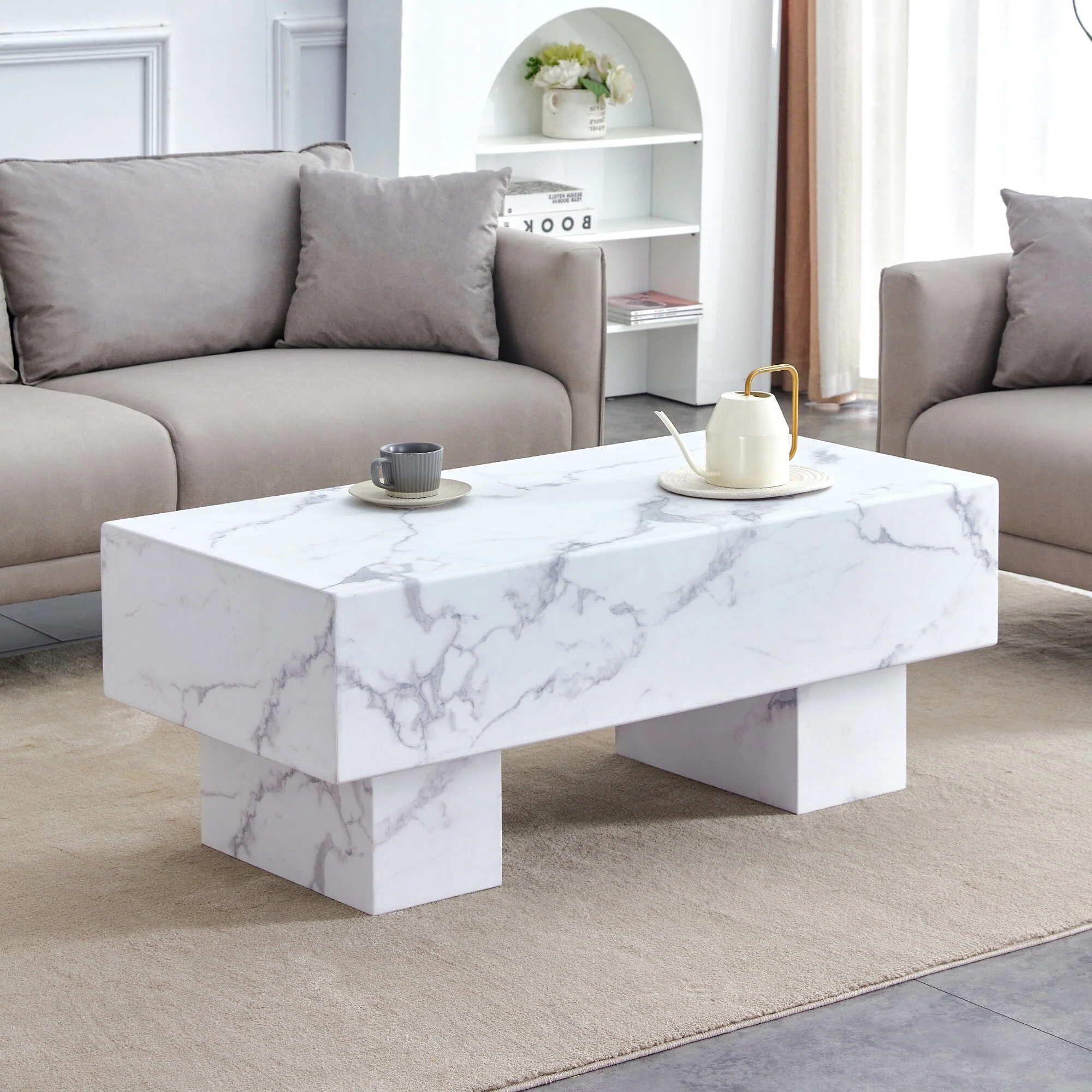 Modern And Practical Coffee Table With Imitation Marble Patterns