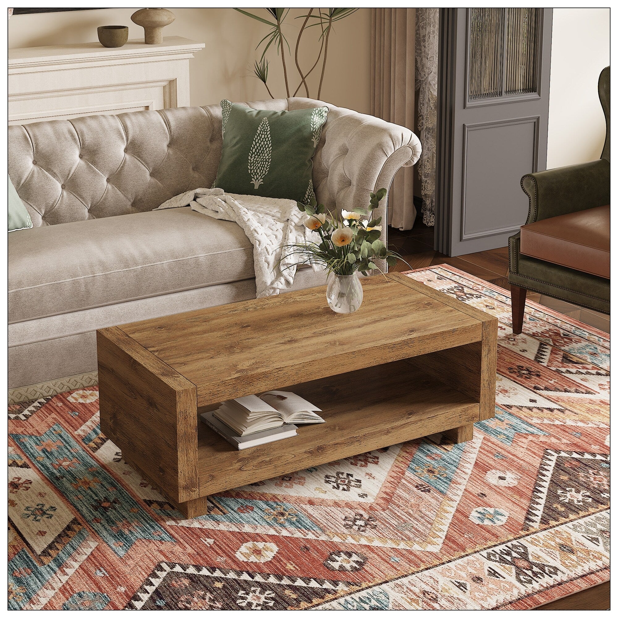 Plank and Beam Modern Rectangular Coffee Table with Shelf