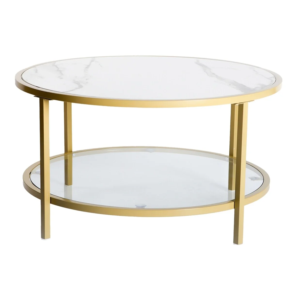 HomyLin Modern Round Coffee Table with Golden Metal Frame