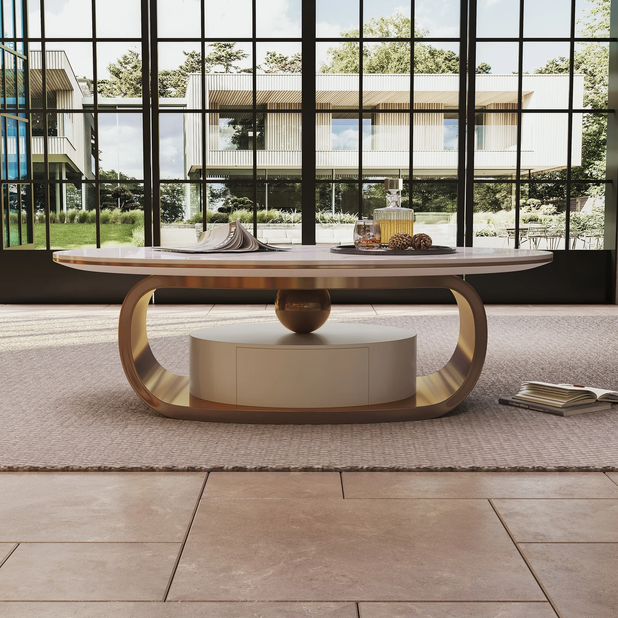 Faux Marble Coffee Table with Storage