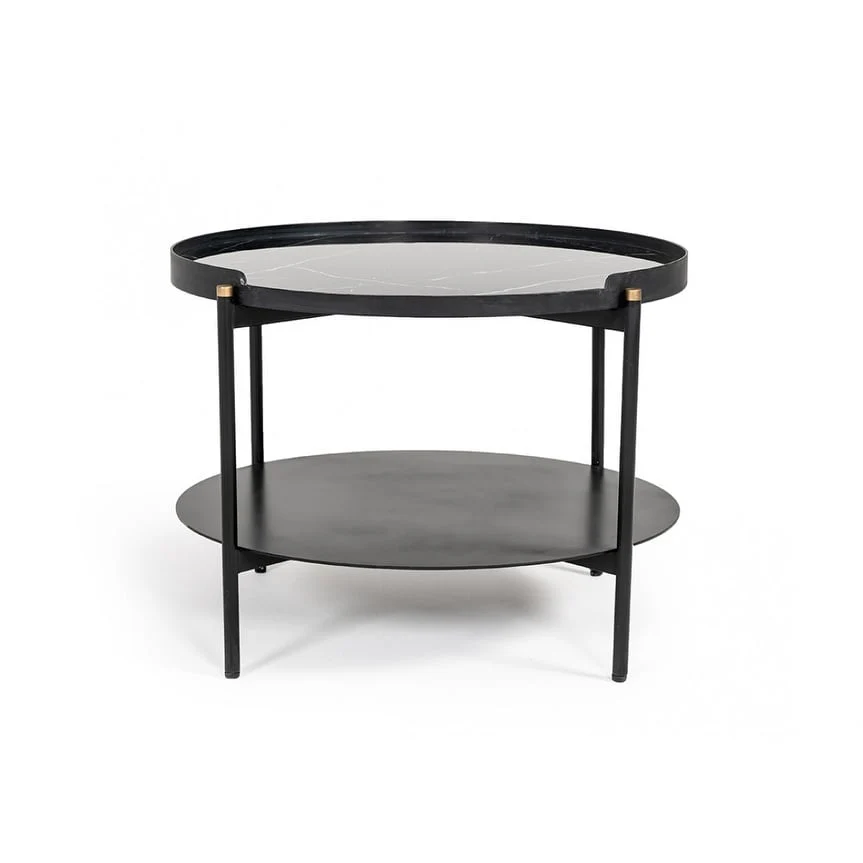 Modern Black Marble Painted Round Metal Coffee Table