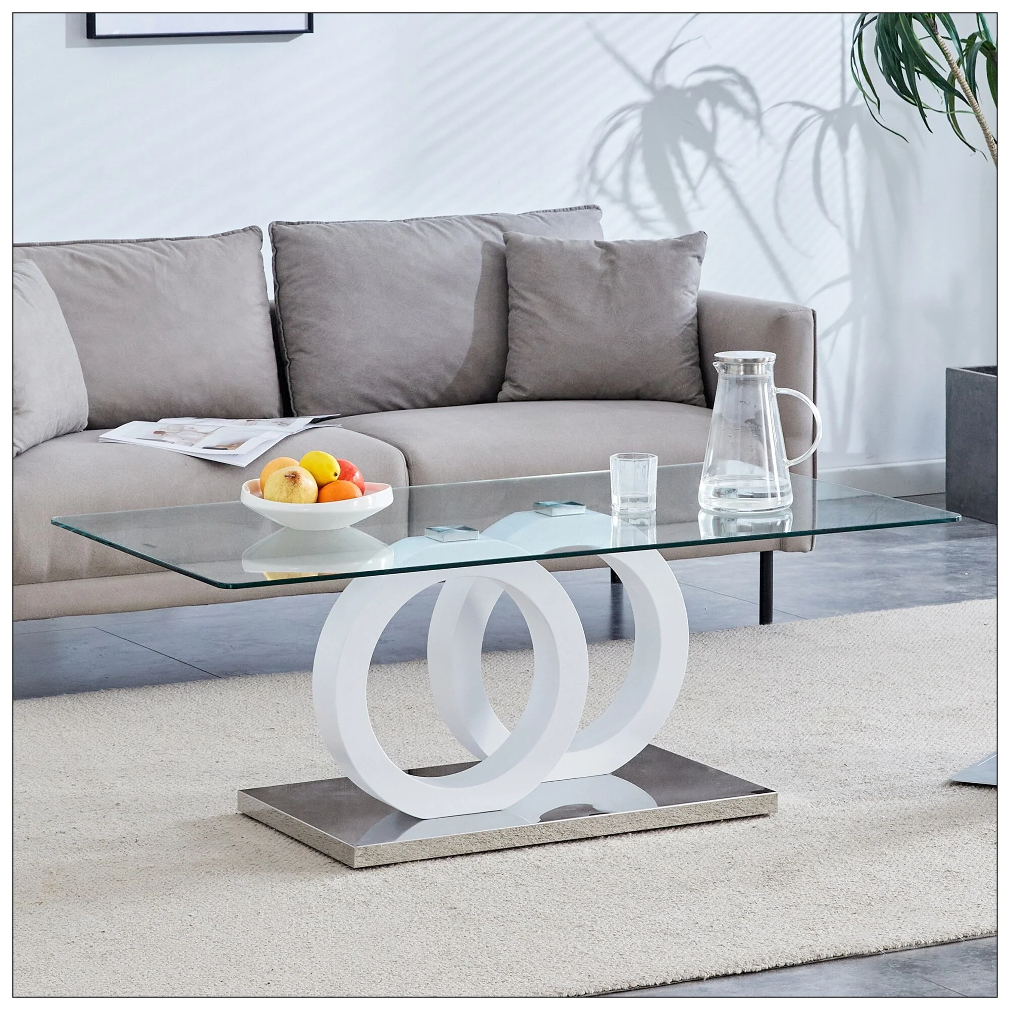 Contemporary Style Glass-Top MDF Coffee Table with White Base
