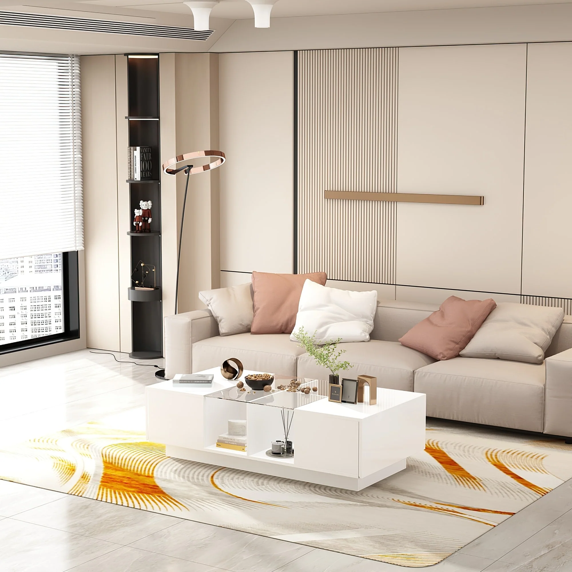Modern Rectangular Led Lights Coffee Table With 2 Drawers