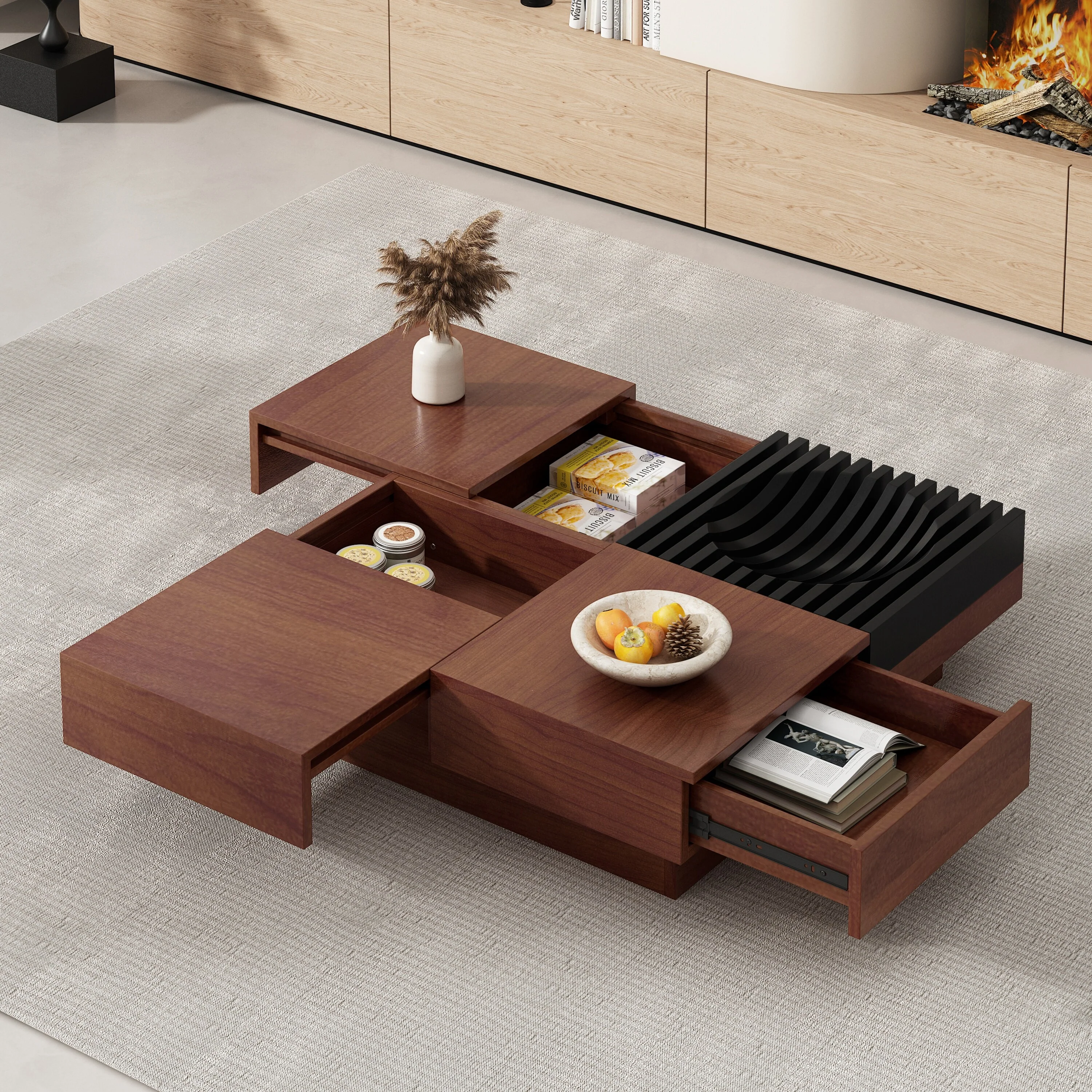 Acacia Wood Storage Coffee Table ,Brown & Black Color