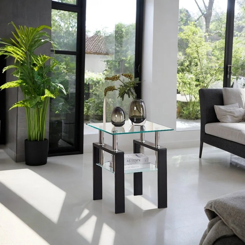 Outdoor Wicker Coffee Table Glass Top Table End Table