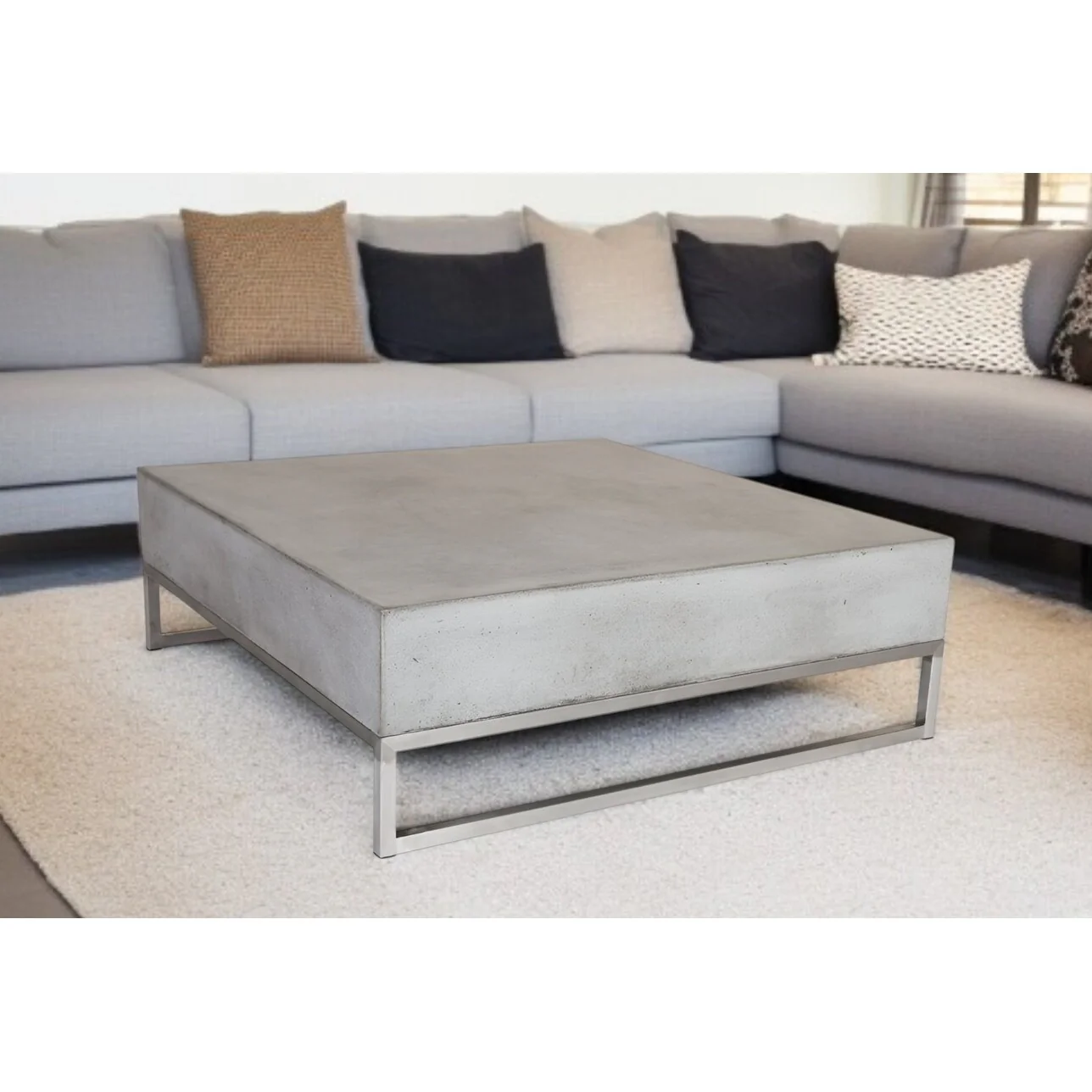 Modern Square Dark Gray Concrete and Steel Coffee Table