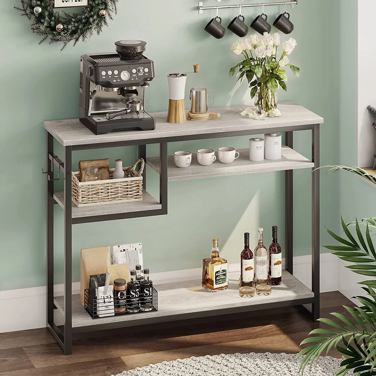Narrow Console Table with 4 Storage Shelves Rustic